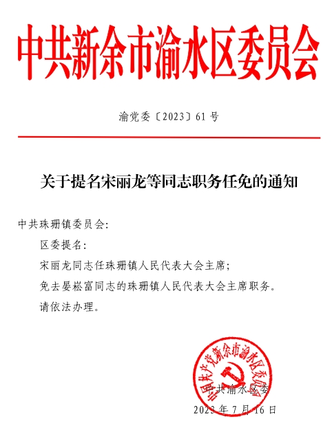 【轉(zhuǎn)發(fā)】渝黨委〔2023〕61號關于提名宋麗龍等同志職務任免的通知