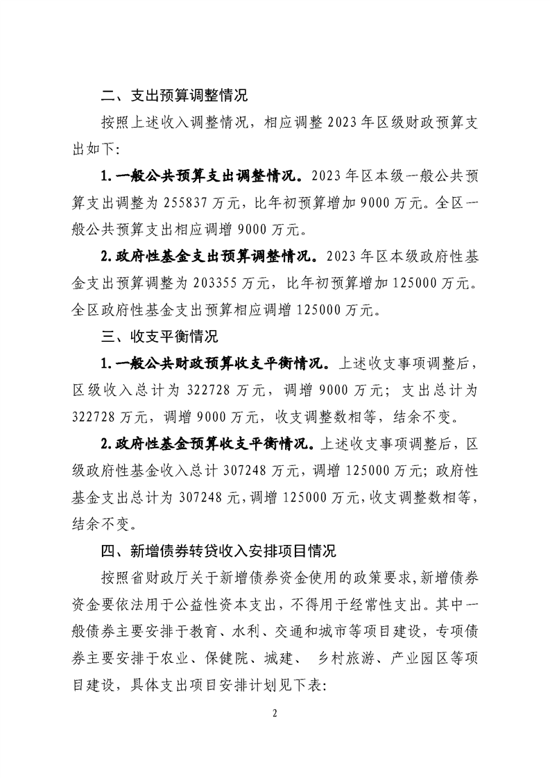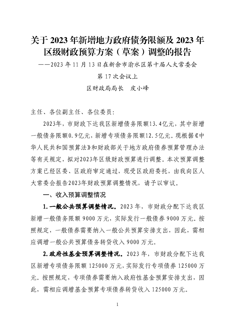 關(guān)于2023年新增地方政府債務(wù)限額及2023年區(qū)級(jí)財(cái)政預(yù)算方案(草案)調(diào)整的報(bào)告