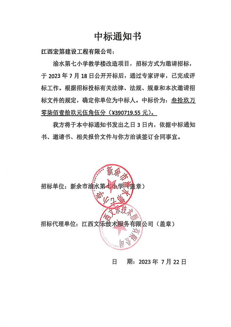 【工程建設項目招標投標】渝水第七小學教學樓改造項目
