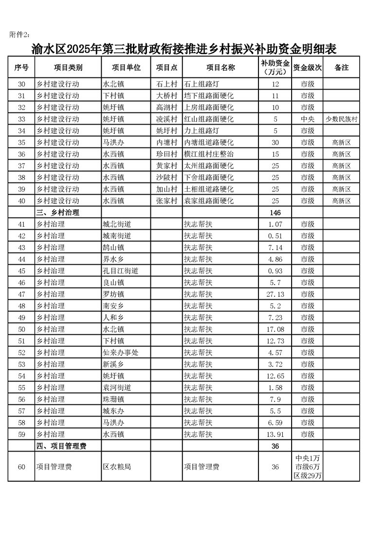 渝水區2025年第四批財政銜接推進鄉村振興補助資金分配計劃