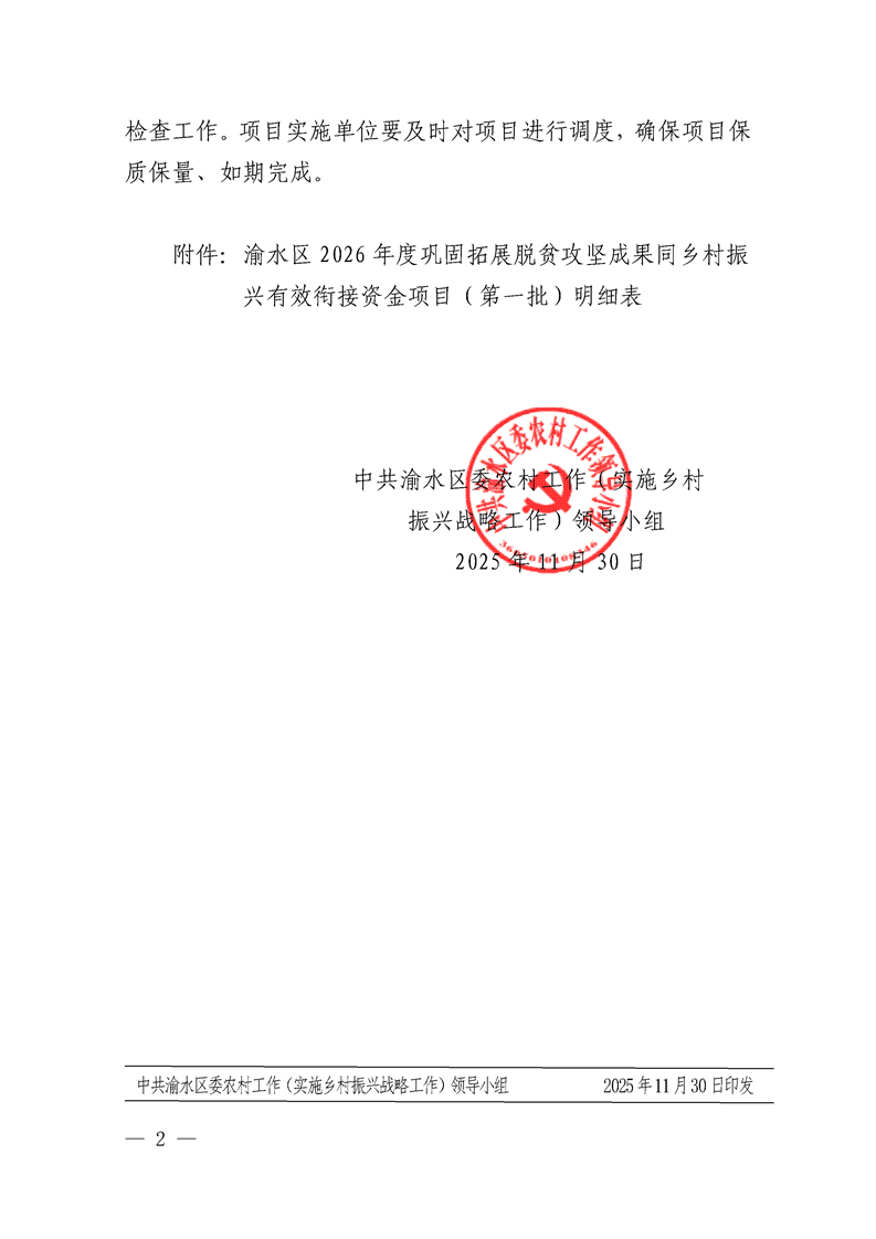 中共渝水區委農村工作(實施鄉村振興戰略工作)領導小組關于渝水區2026年度鞏固拓展脫貧攻堅成果同鄉村振興有效銜接項目(第一批)立項的批復