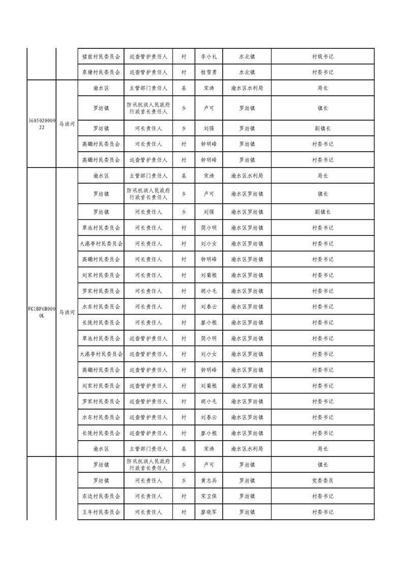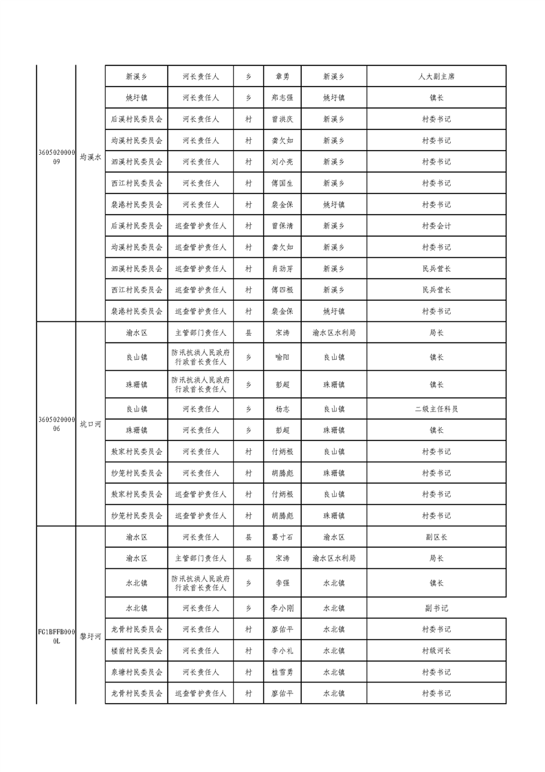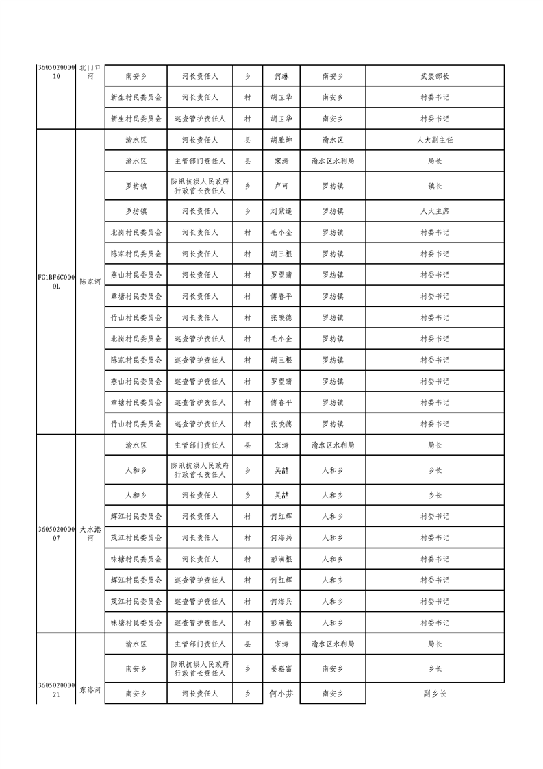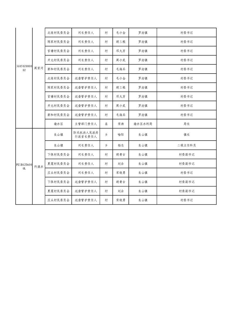新余市渝水區流域面積200km2及以下山區河流責任人名單公示
