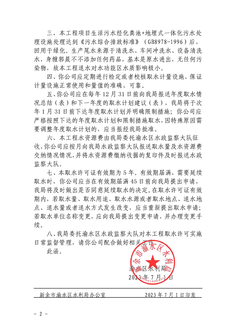 取水許可批復(fù)(新余市蒙山龍施泉食品有限公司延續(xù)取水許可的復(fù)函)