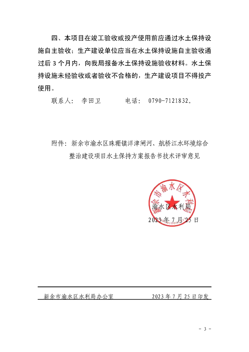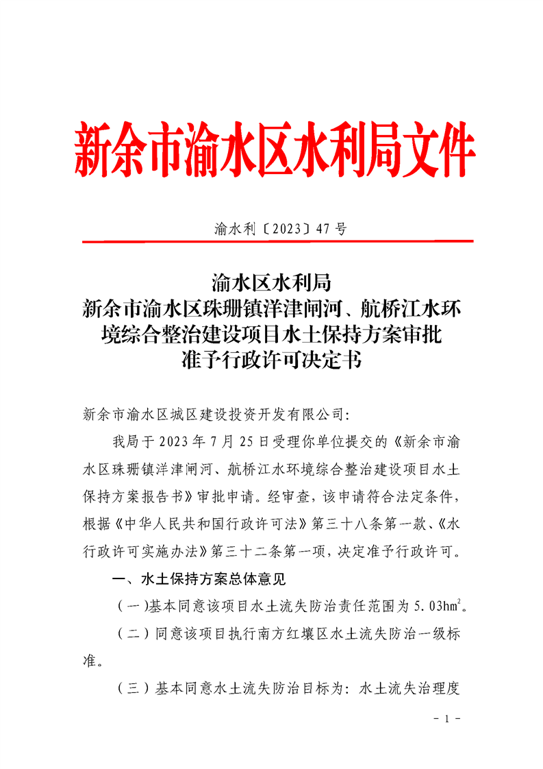 生產建設項目水土保持方案審批(新余市渝水區城區建設投資開發有限公司)