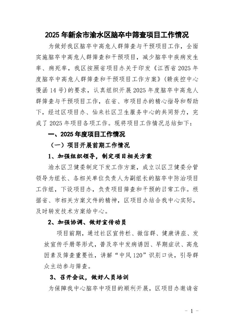 2025年新余市渝水區(qū)腦卒中篩查項目工作開展情況