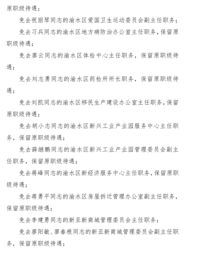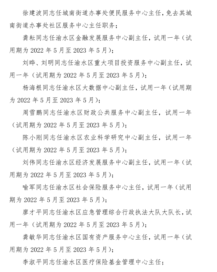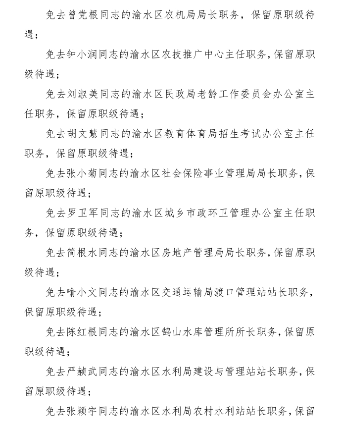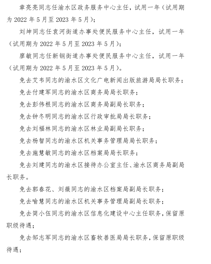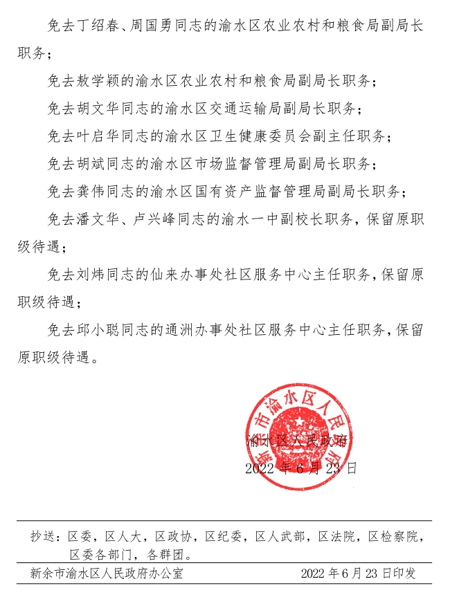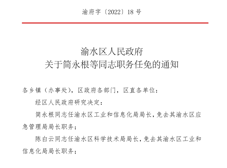 渝水區人民政府關于簡永根等同志職務任免的通知