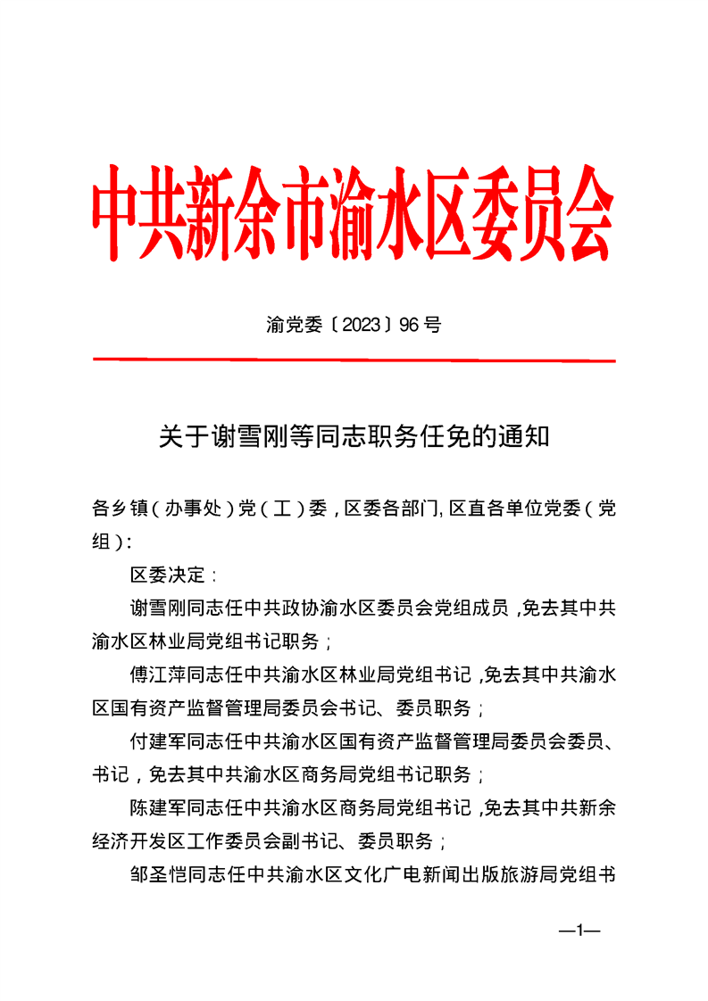 關于謝雪剛等同志職務任免的通知