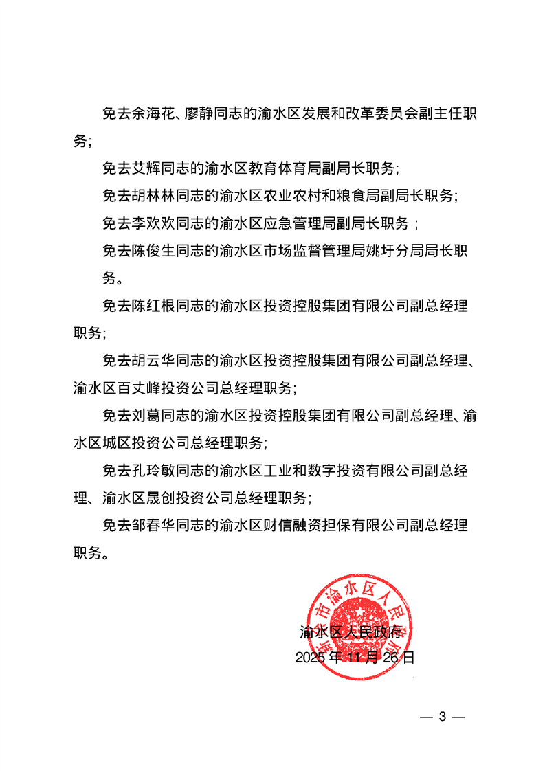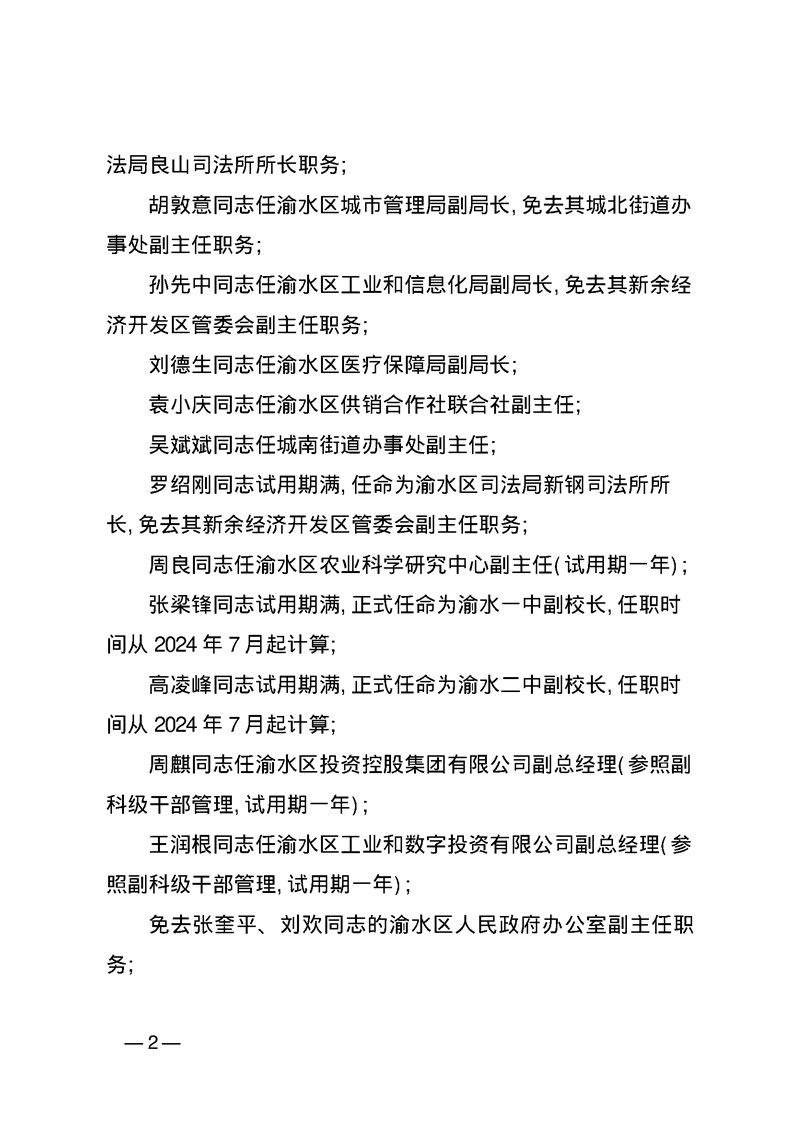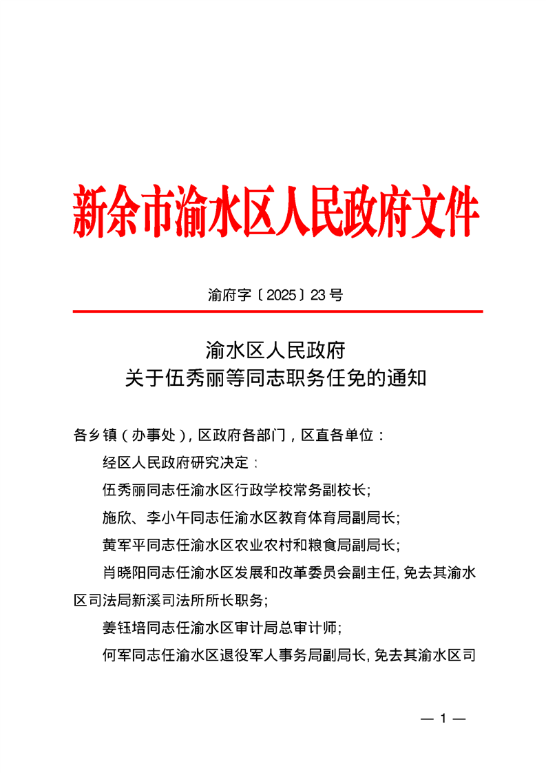 渝府字(2025)23號 渝水區人民政府關于伍秀麗同志職務任免的通知