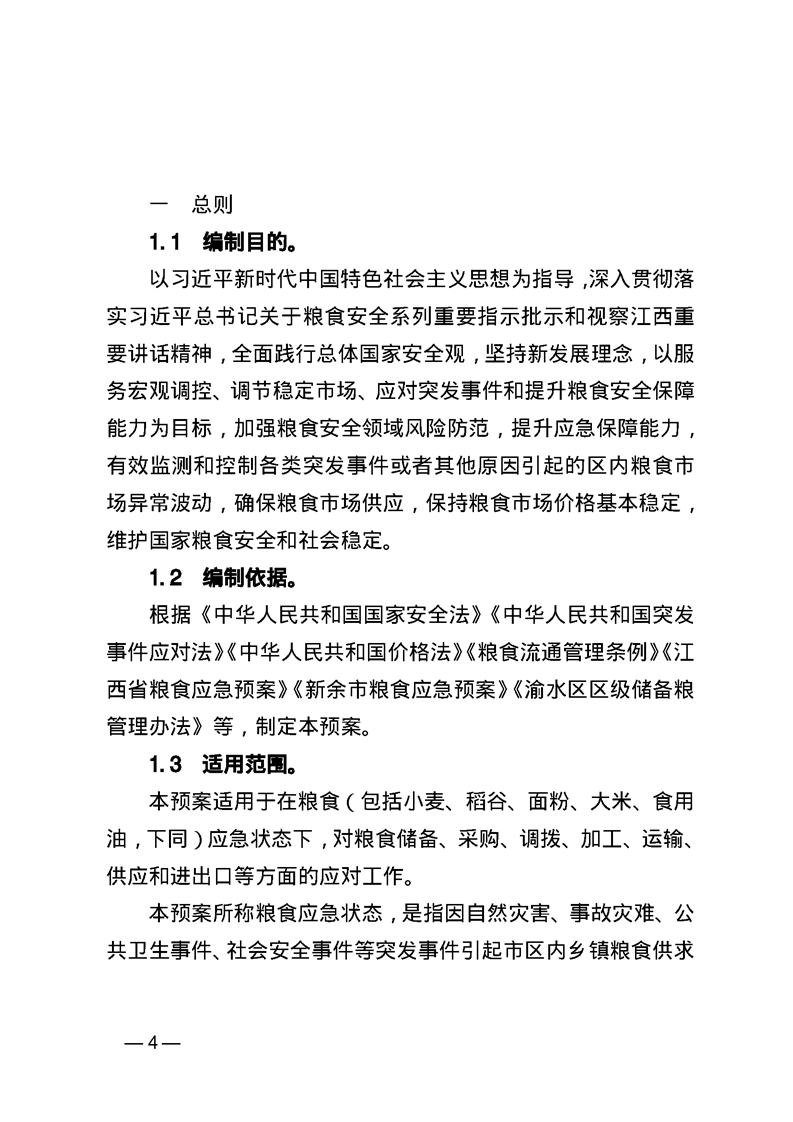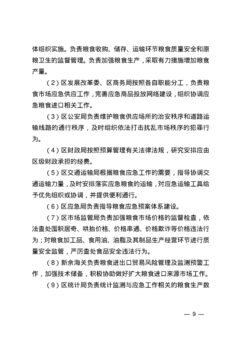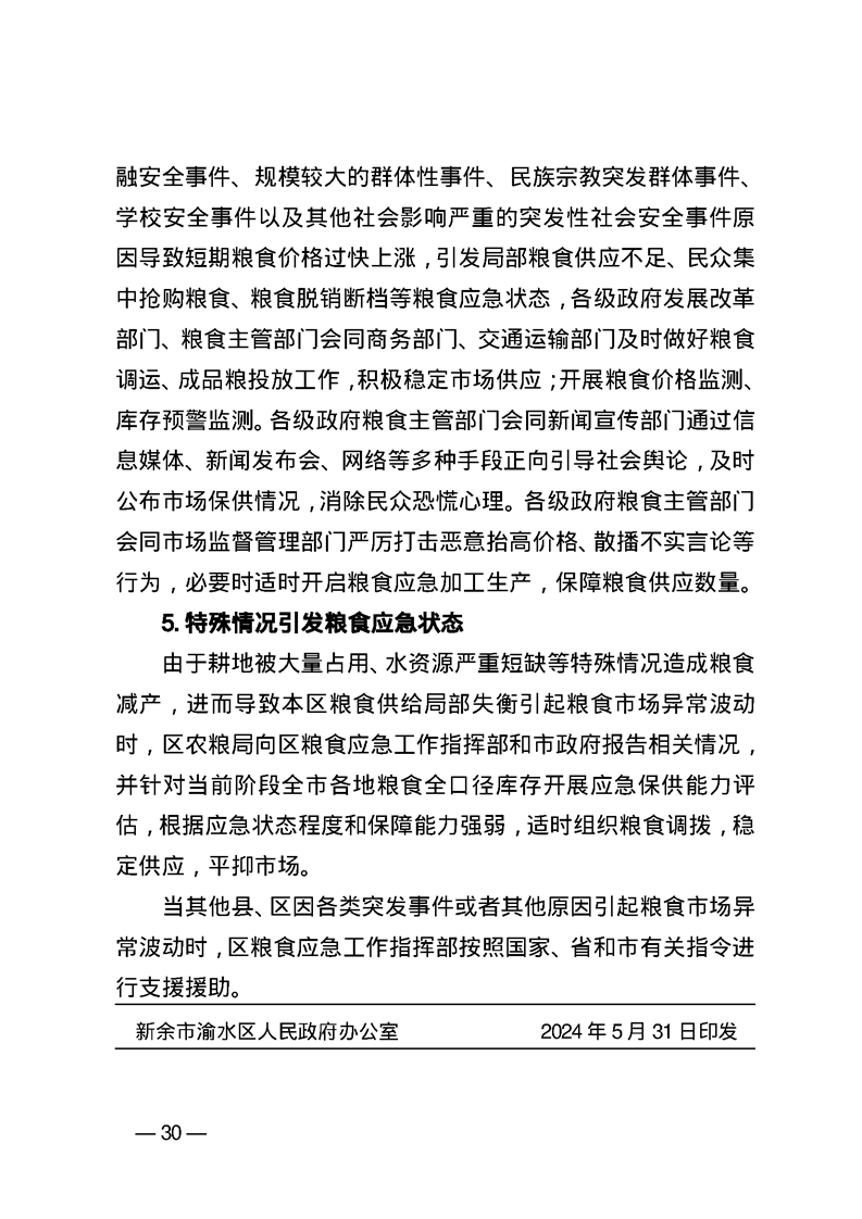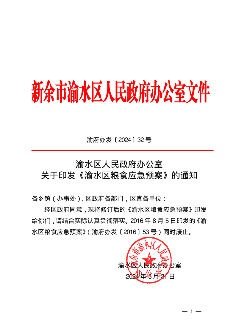 渝水區(qū)人民政府辦公室關于印發(fā)《渝水區(qū)糧食應急預案》的通知