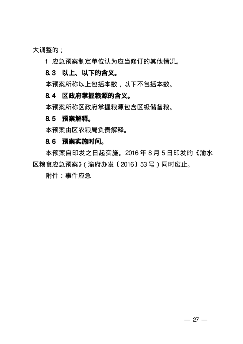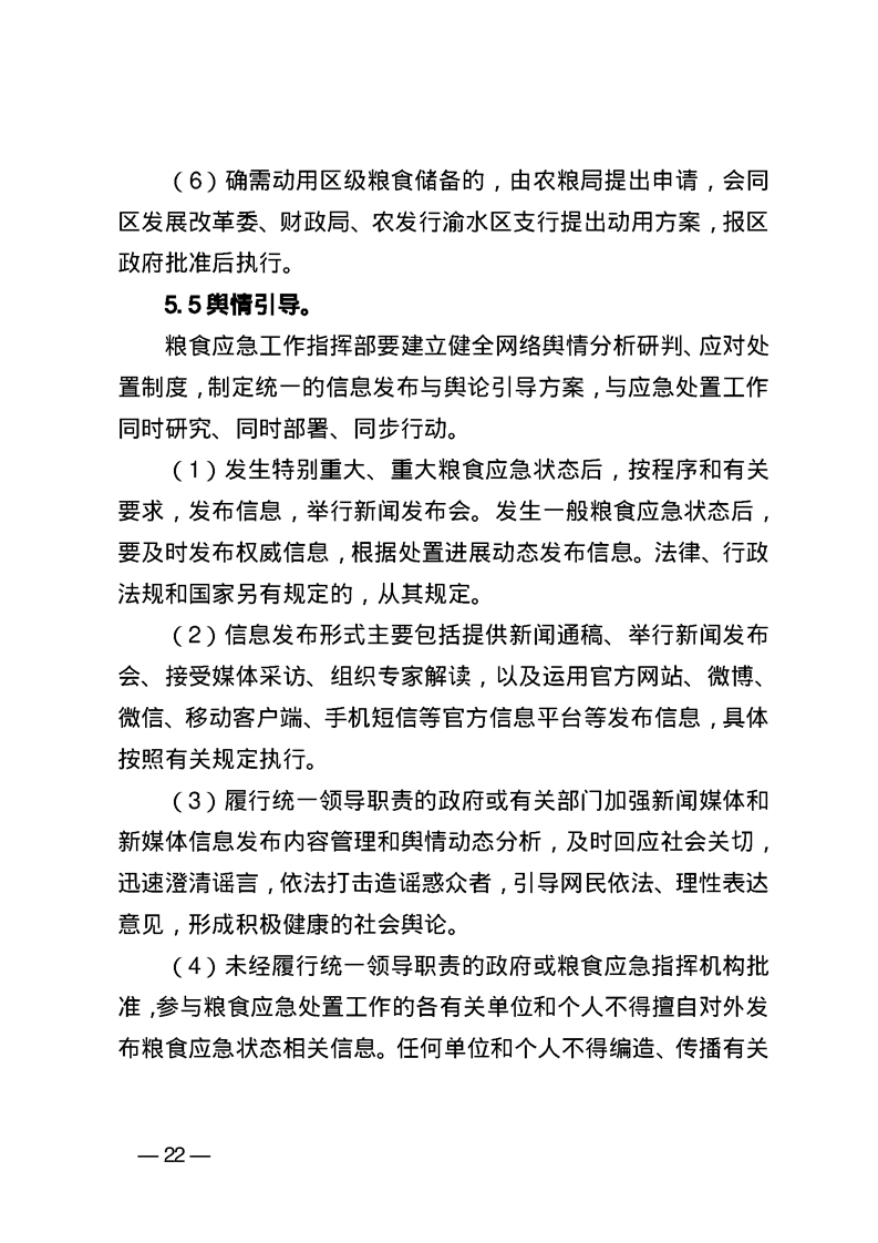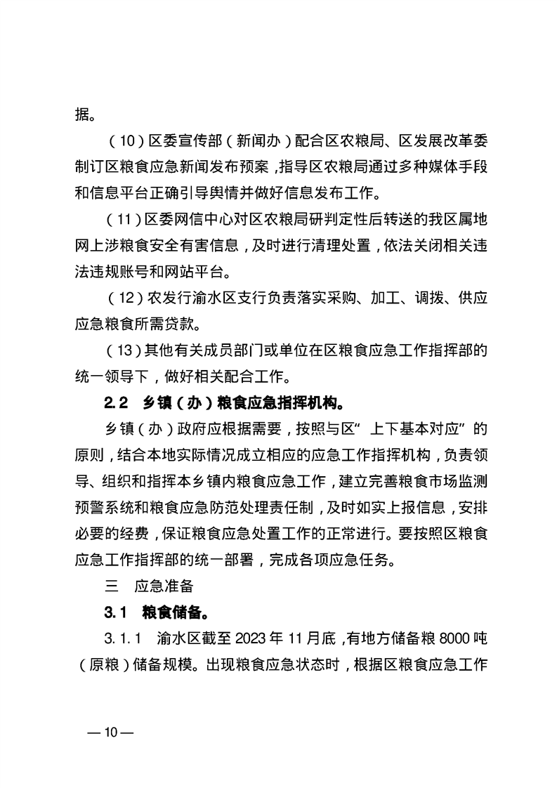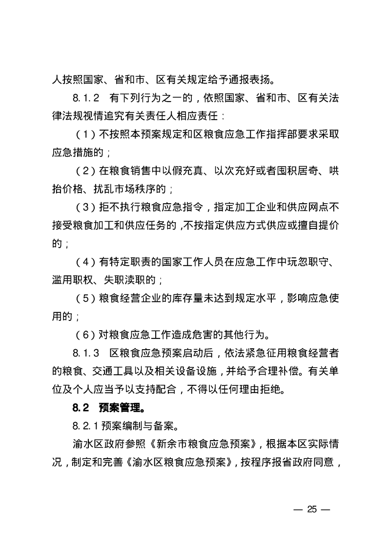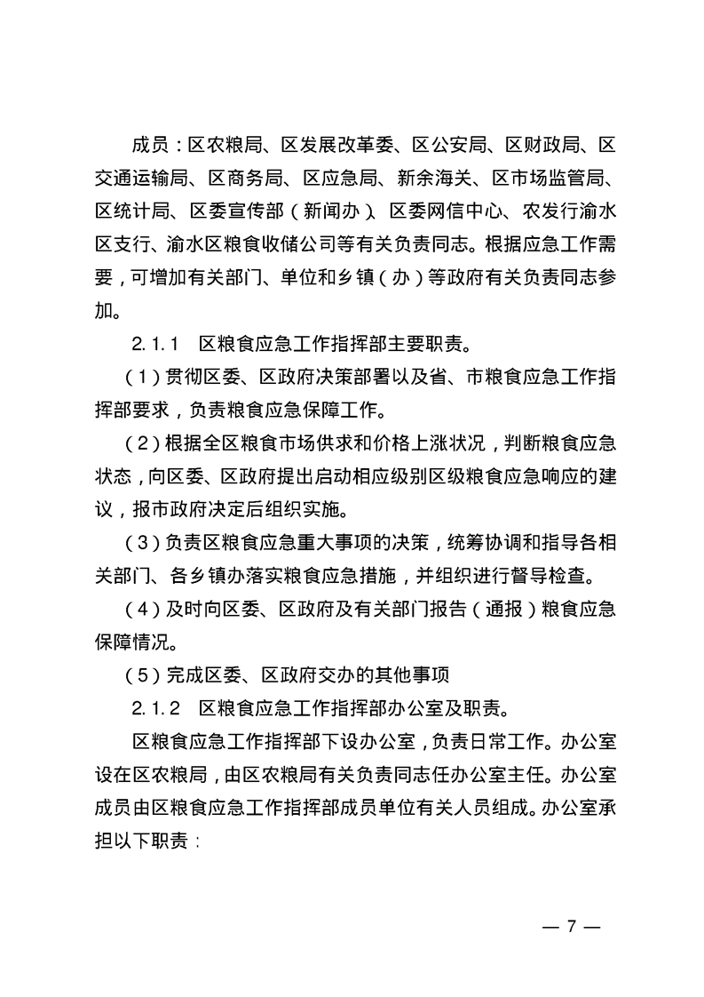 渝水區(qū)人民政府辦公室關于印發(fā)《渝水區(qū)糧食應急預案》的通知