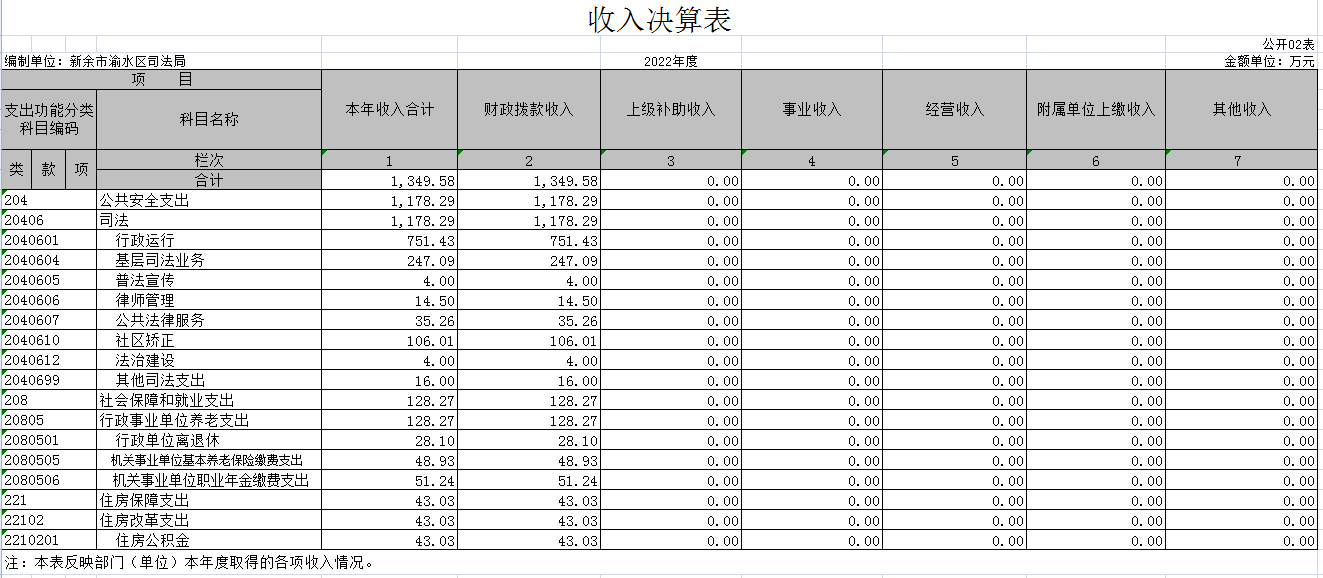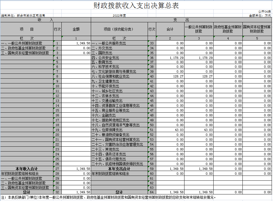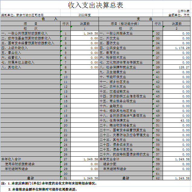 渝水區司法局2022年度部門決算
