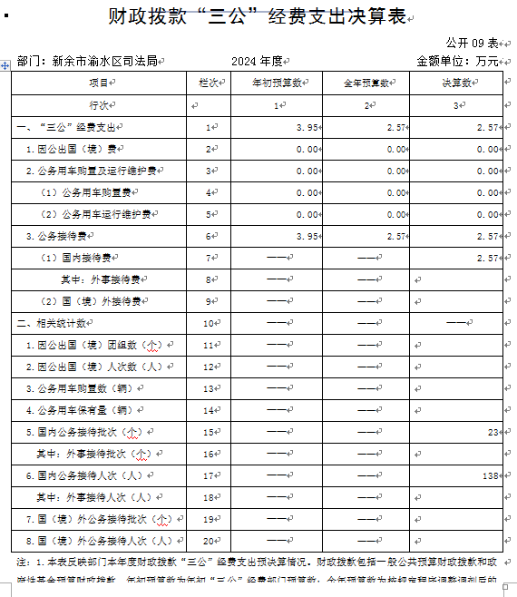 本部門2024年度財(cái)政撥款“三公”經(jīng)費(fèi)支出全年預(yù)算數(shù)2.57萬元,決算數(shù)2.57萬元,完成全年預(yù)算的100.00%;決算數(shù)比上年減少0.55萬元,下降17.64%,主要原因是本著過緊日子的原則,厲行節(jié)約。詳見《財(cái)政撥款“三公”經(jīng)費(fèi)支出決算表》。