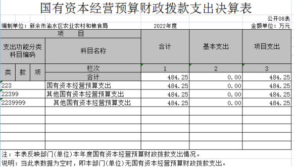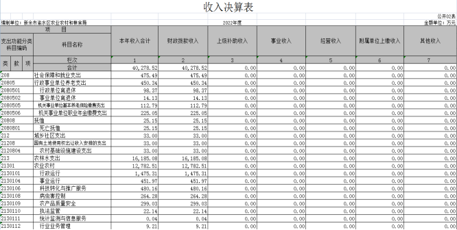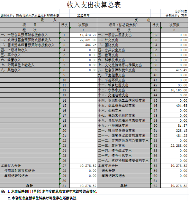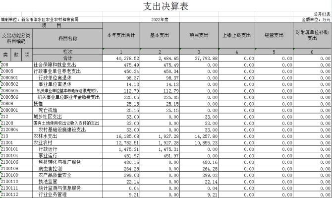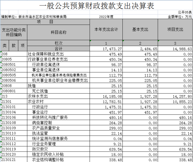 新余市渝水區(qū)農(nóng)業(yè)農(nóng)村和糧食局2022年度決算
