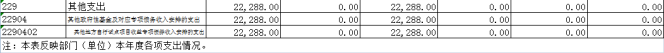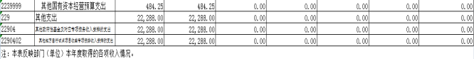(九)其他支出年初預(yù)算數(shù)為22288萬(wàn)元,決算數(shù)為22288萬(wàn)元,完成年初預(yù)算的 100%。