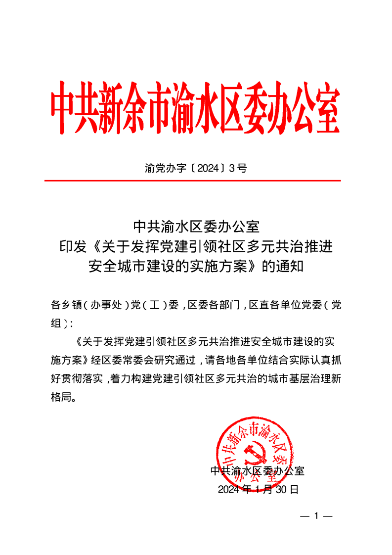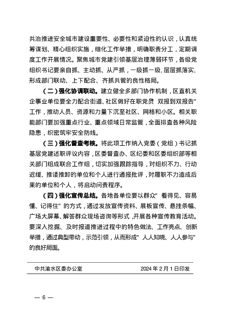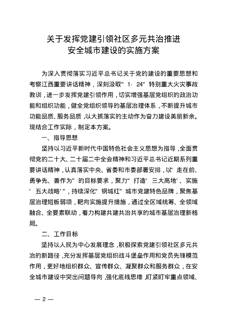 關于發揮黨建引領社區多元共治推進安全城市建設的實施方案