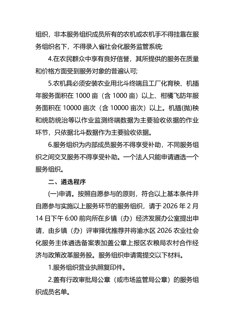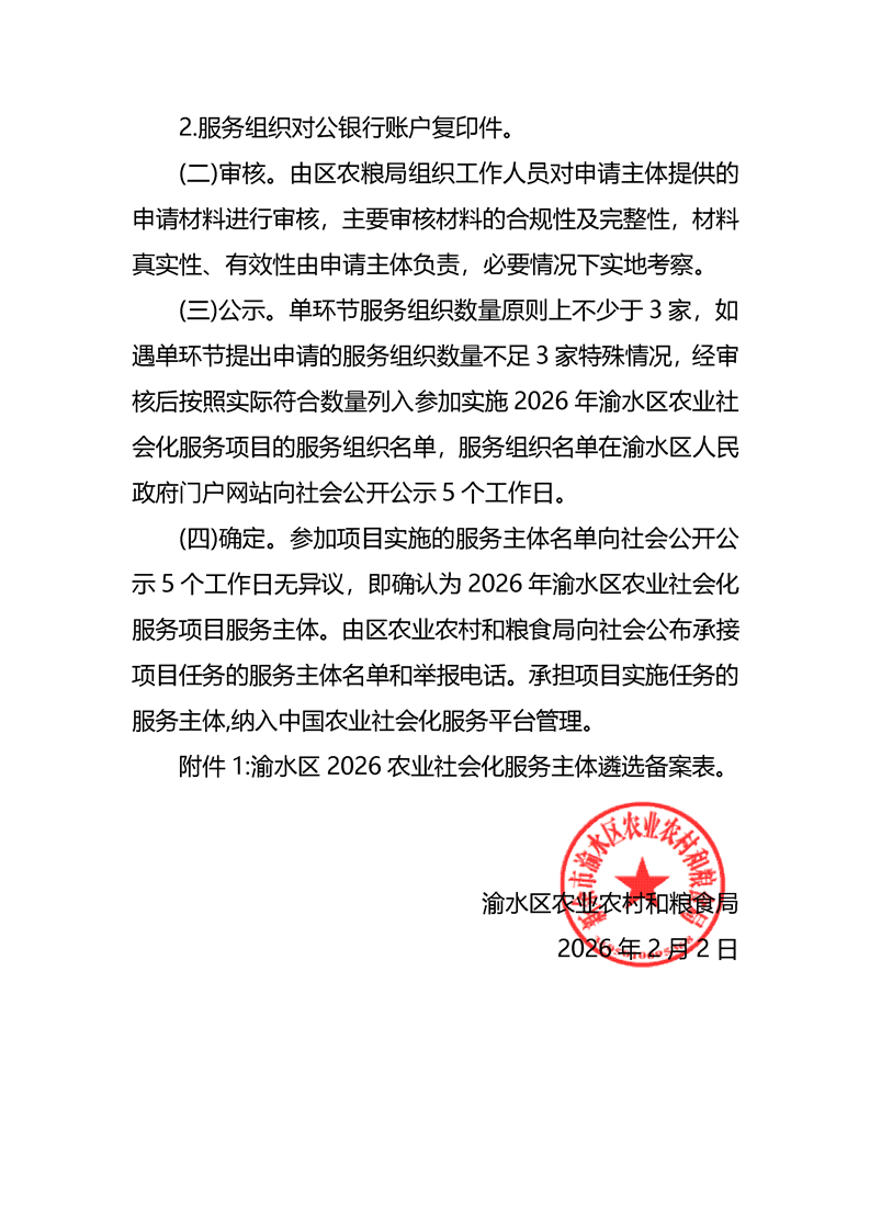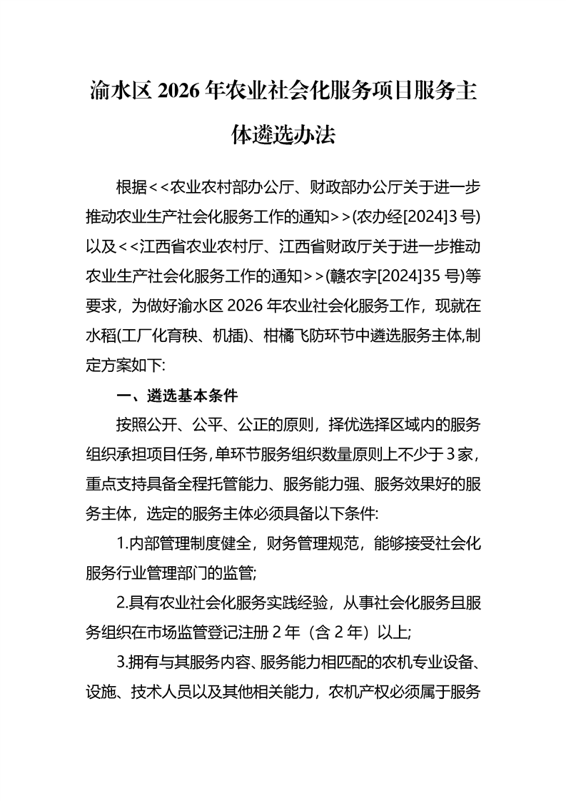 渝水區2026年農業社會化服務項目(新型農業經營)服務主體遴選方案
