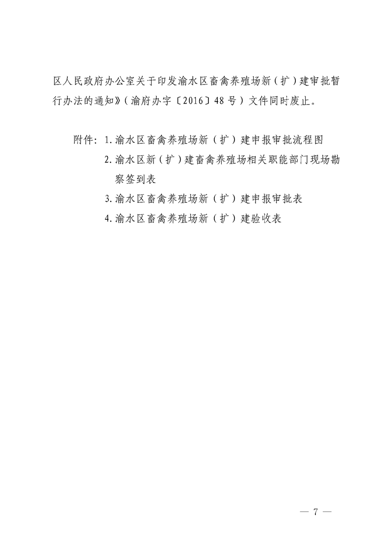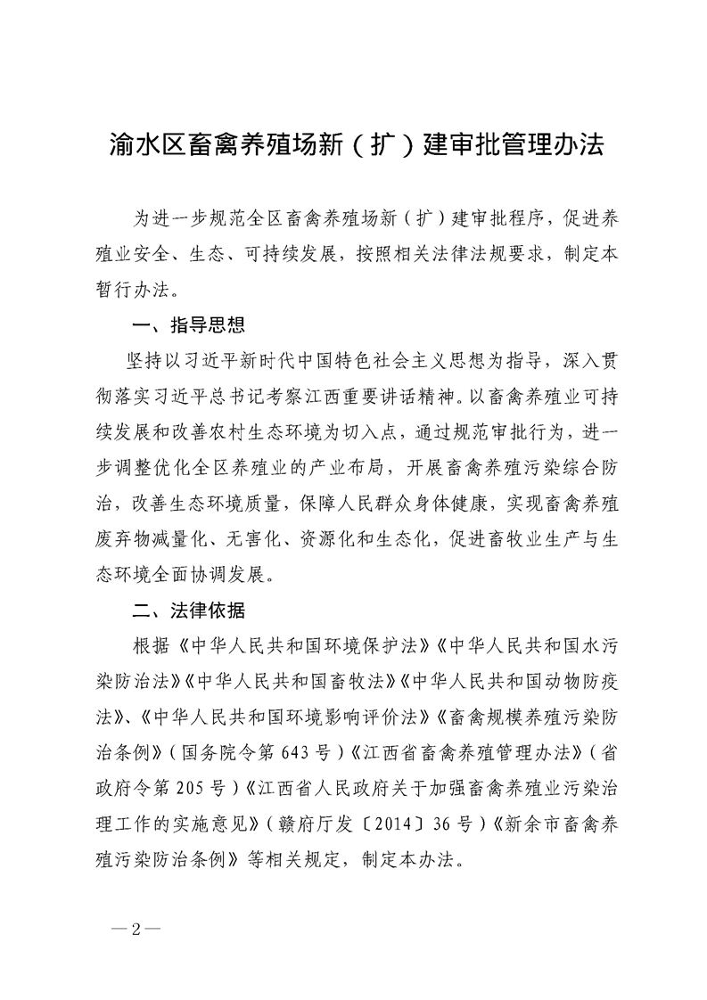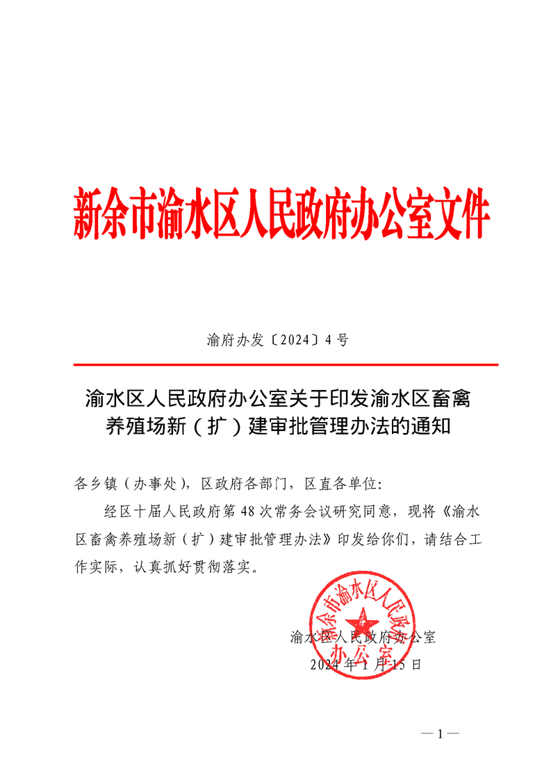 渝水區人民政府辦公室關于印發渝水區畜禽養殖場新(擴)建審批管理辦法的通知