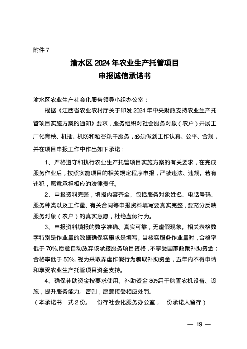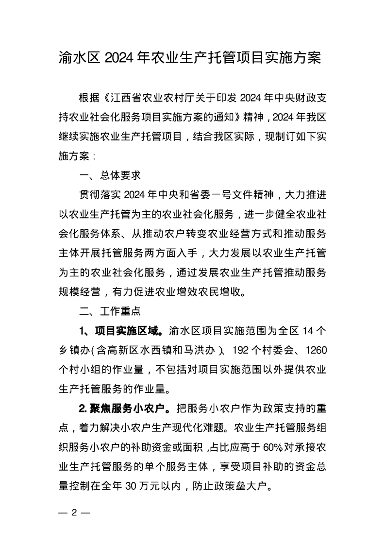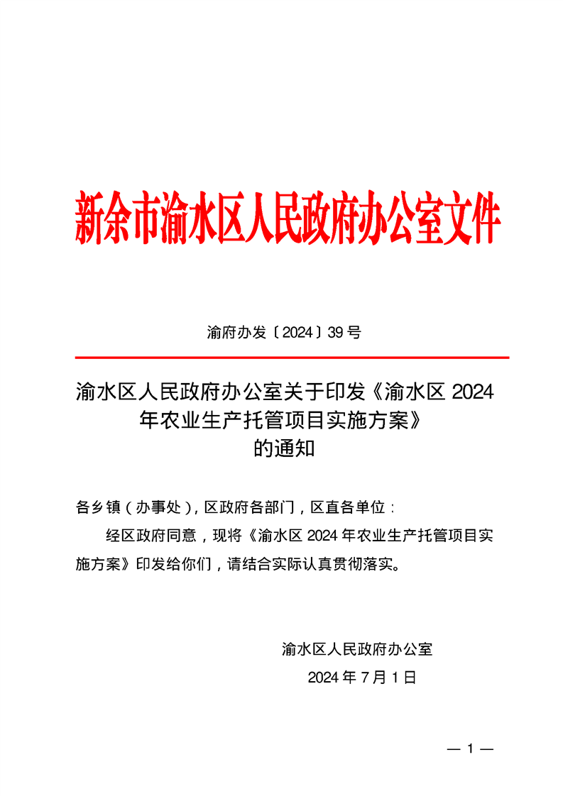 渝水區人民政府辦公室關于印發《渝水區2024年農業生產托管項目實施方案》的通知