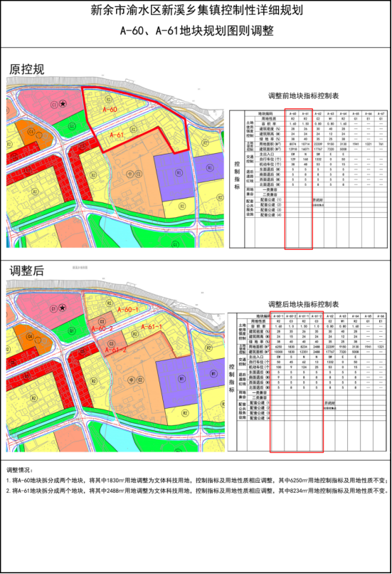 新余市渝水區(qū)新溪鄉(xiāng)集鎮(zhèn)控制性詳細(xì)規(guī)劃地塊A-60、A-61: