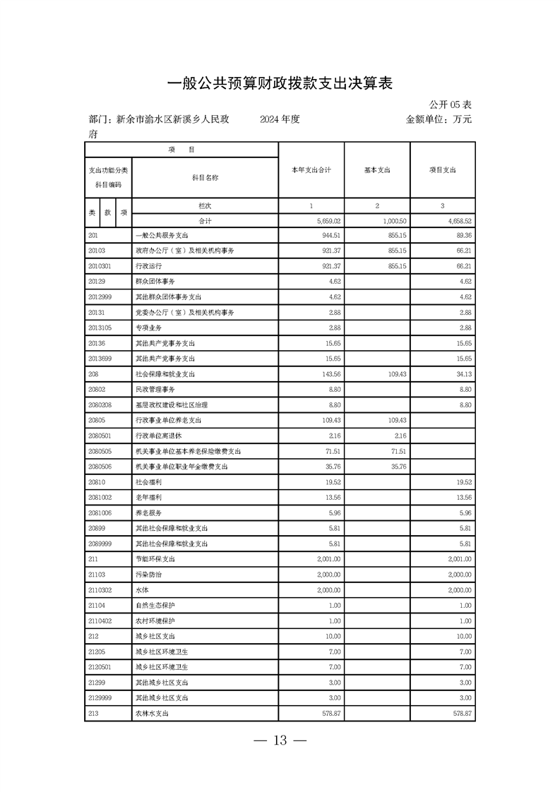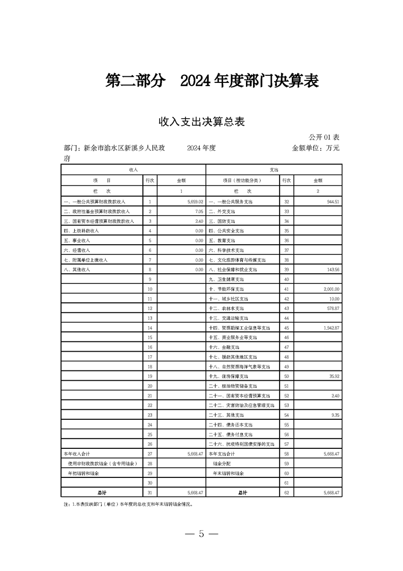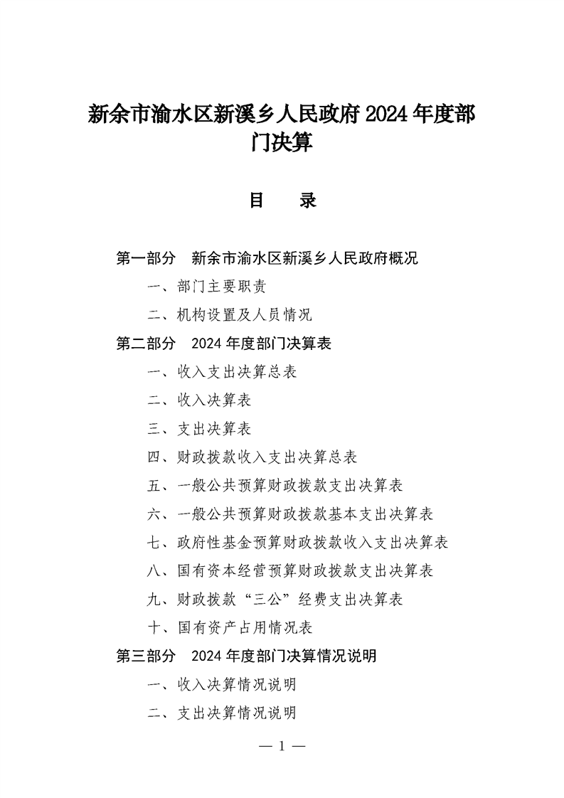 新余市渝水區(qū)新溪鄉(xiāng)人民政府2024年部門決算