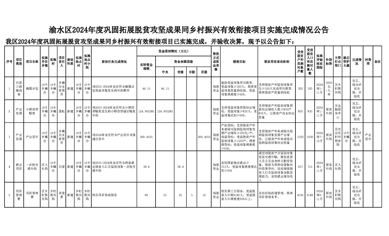渝水區(qū)2024年度鞏固拓展脫貧攻堅成果同鄉(xiāng)村振興有效銜接項目實施完成情況公告