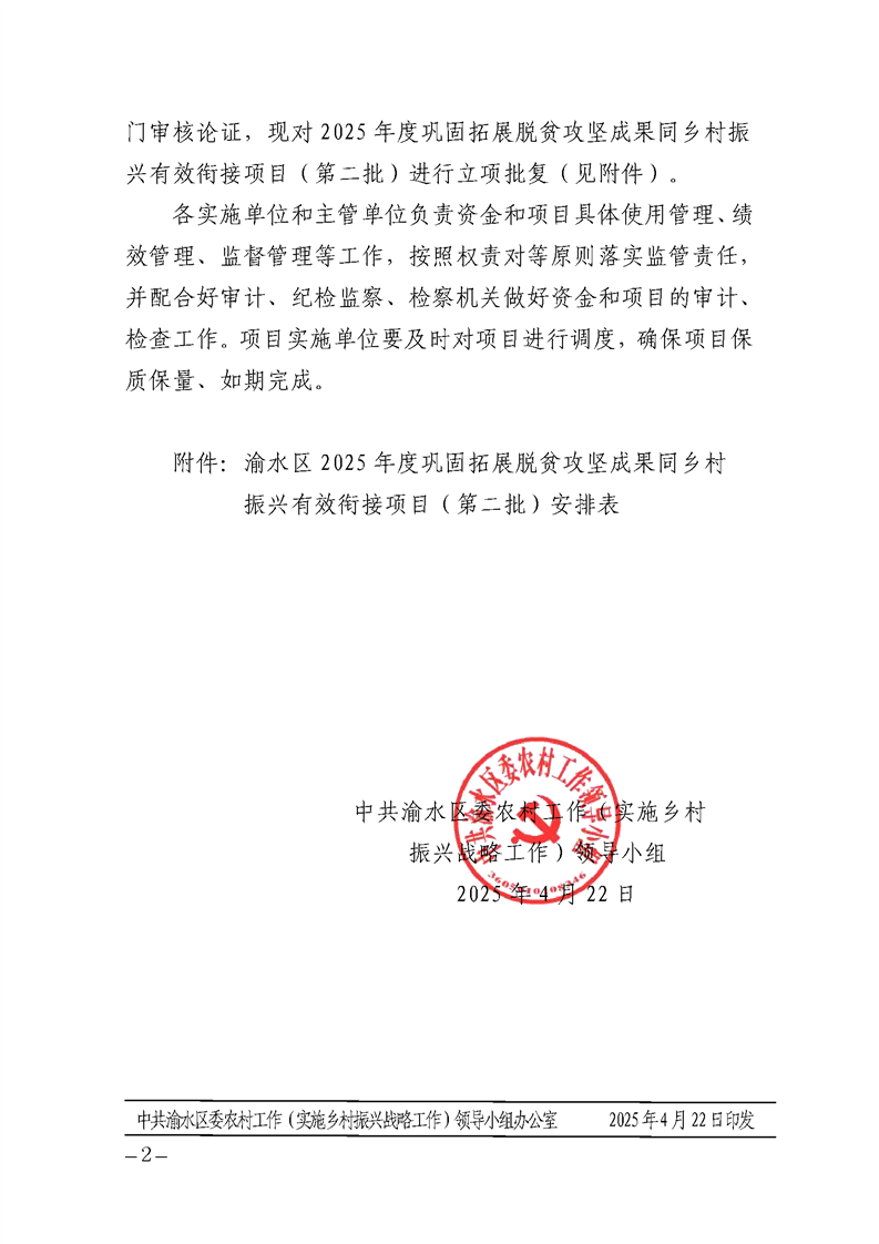 《關于對2025年度鞏固拓展脫貧攻堅成果同鄉村振興有效銜接項目立項的批復(第二批)》(渝黨農字〔2025〕3號)公告