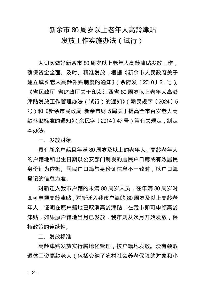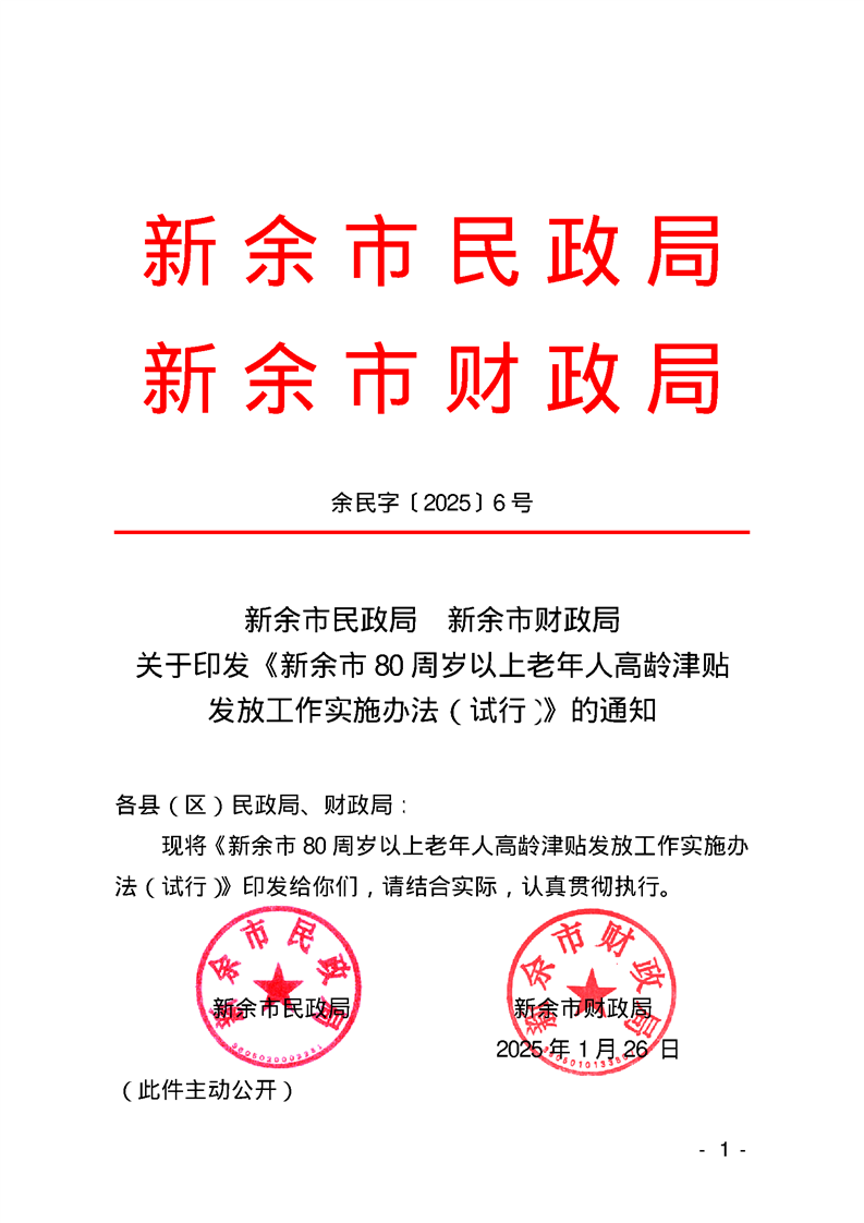 新余市民政局 新余市財政局 關于印發《新余市80周歲以上老年人高齡津貼發放工作實施辦法(試行)》的通知