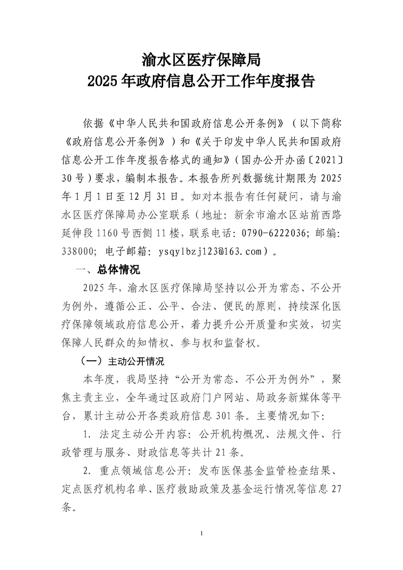 渝水區(qū)醫(yī)療保障局2025年政府信息公開工作年度報告