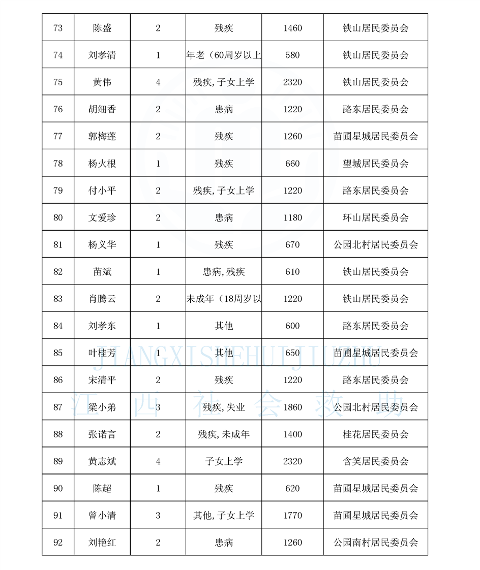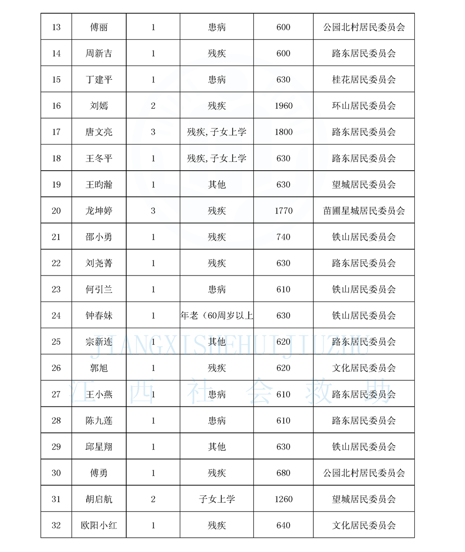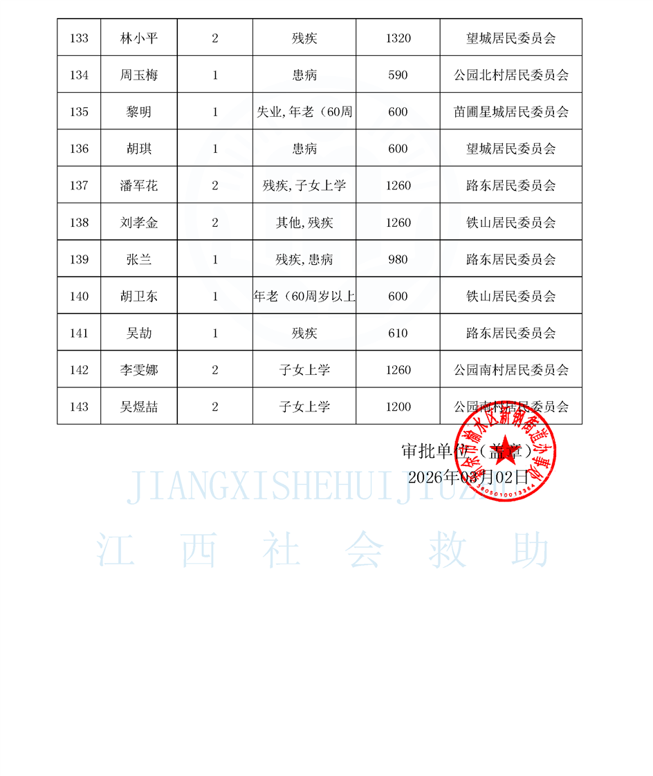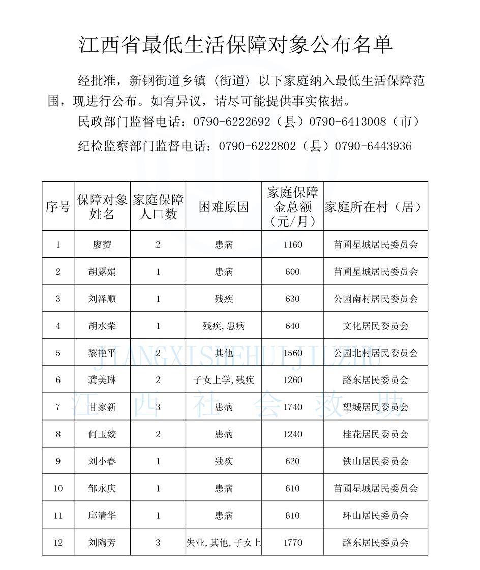 新鋼街道2026年3月份最低生活保障對象公示名單