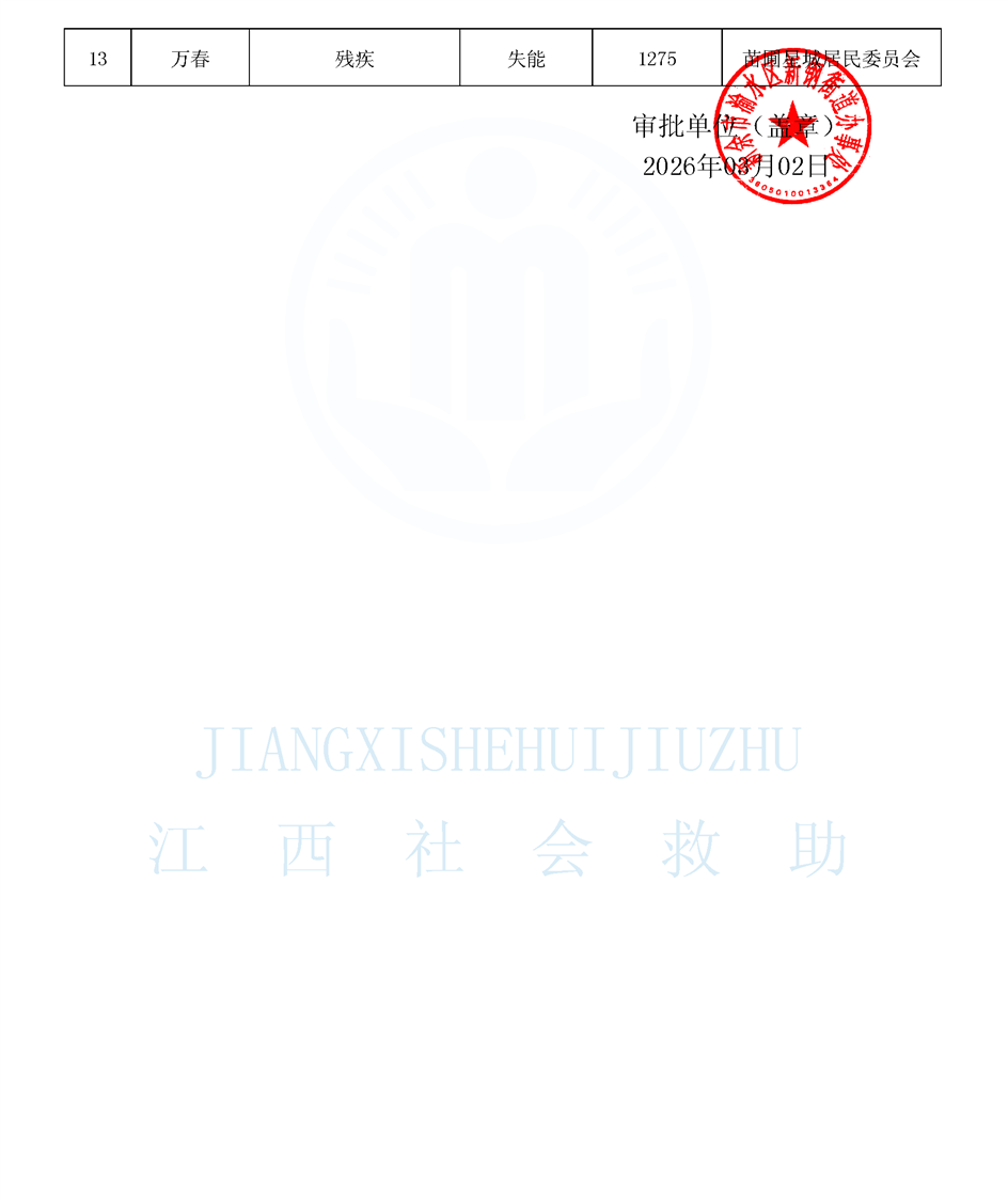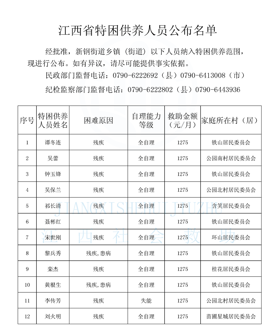 新鋼街道2026年3月份城鄉(xiāng)特困對象公示名單