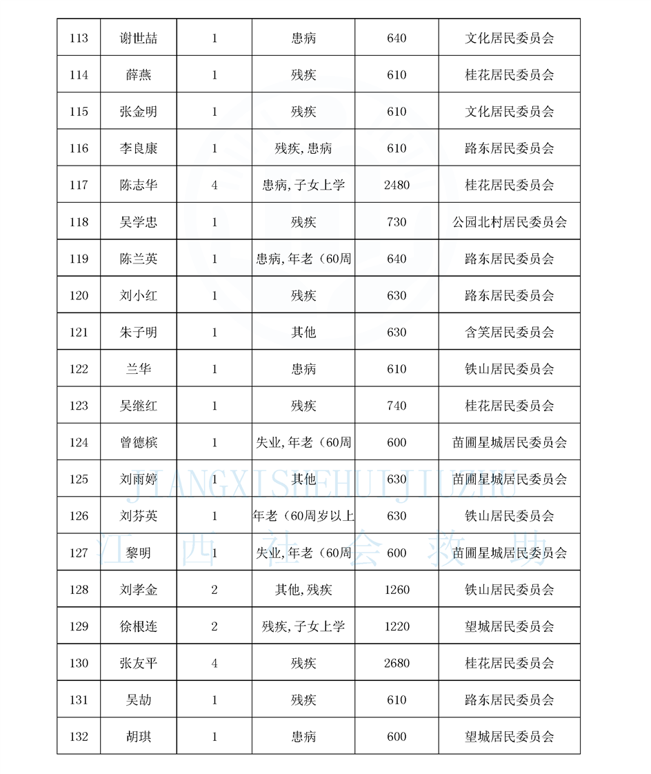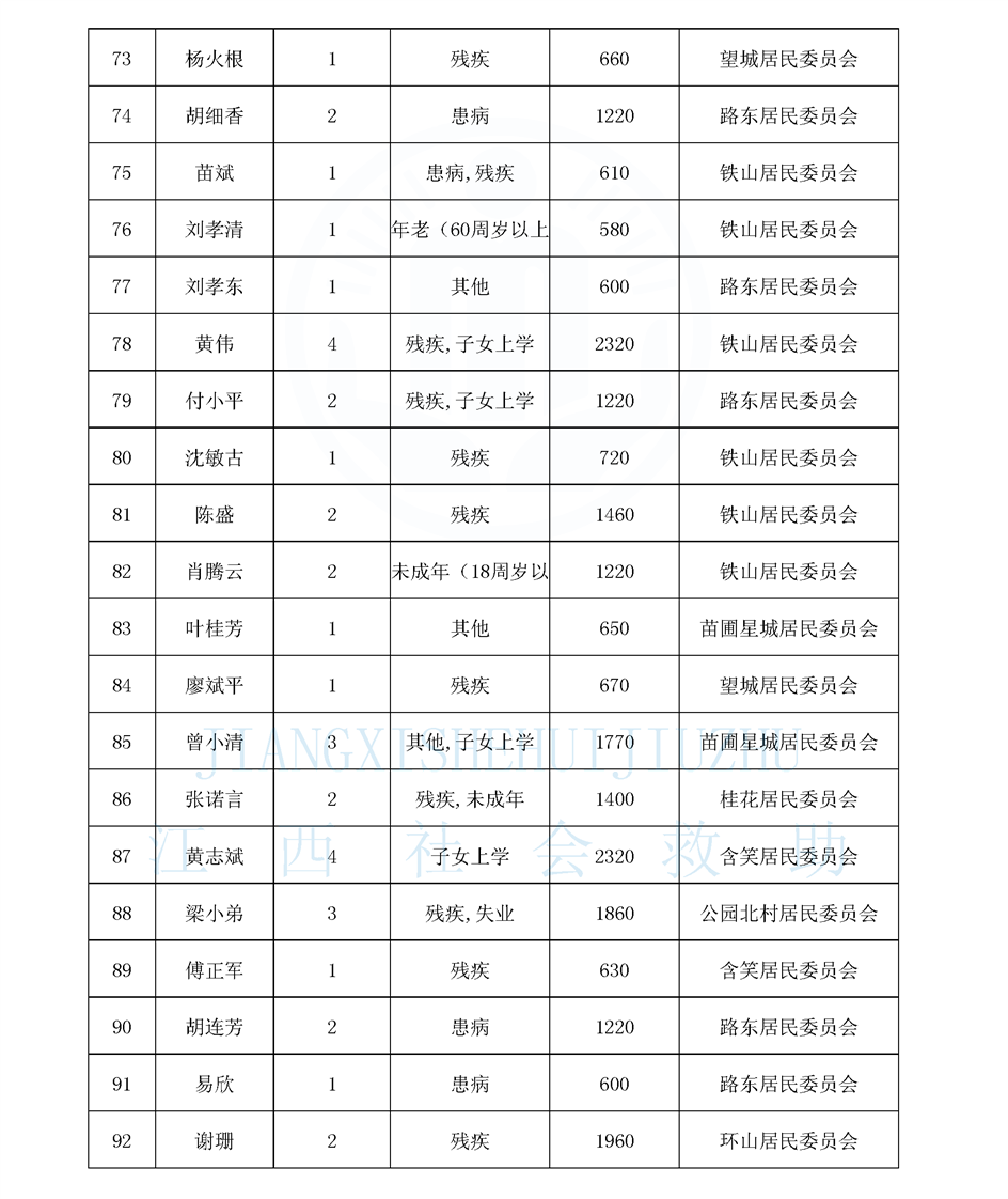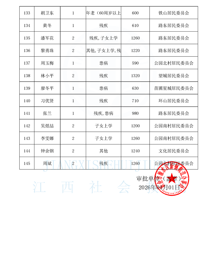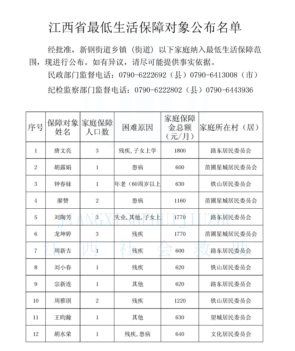 新鋼街道2026年4月份最低生活保障對象公示名單