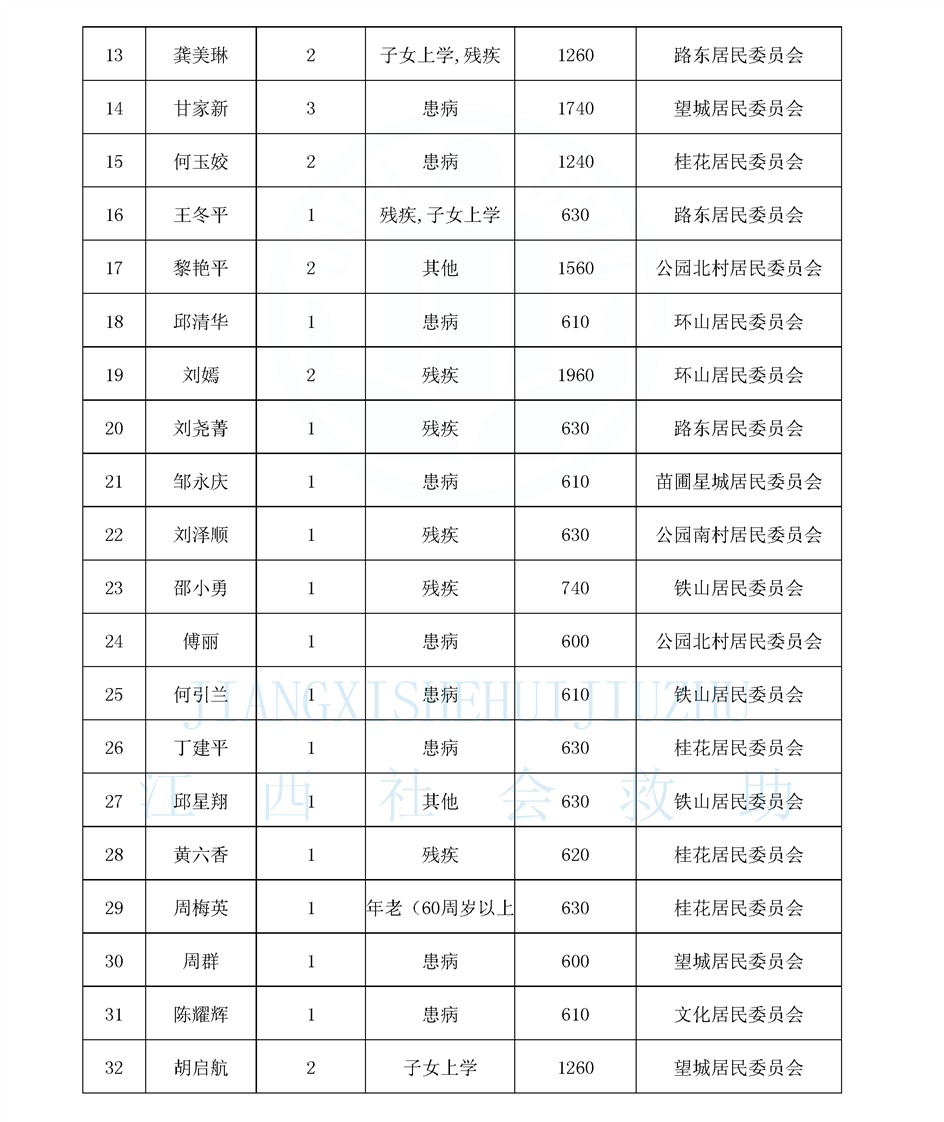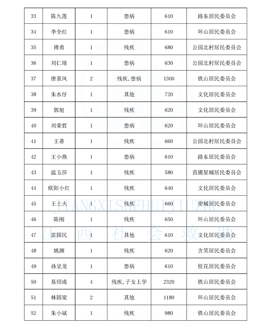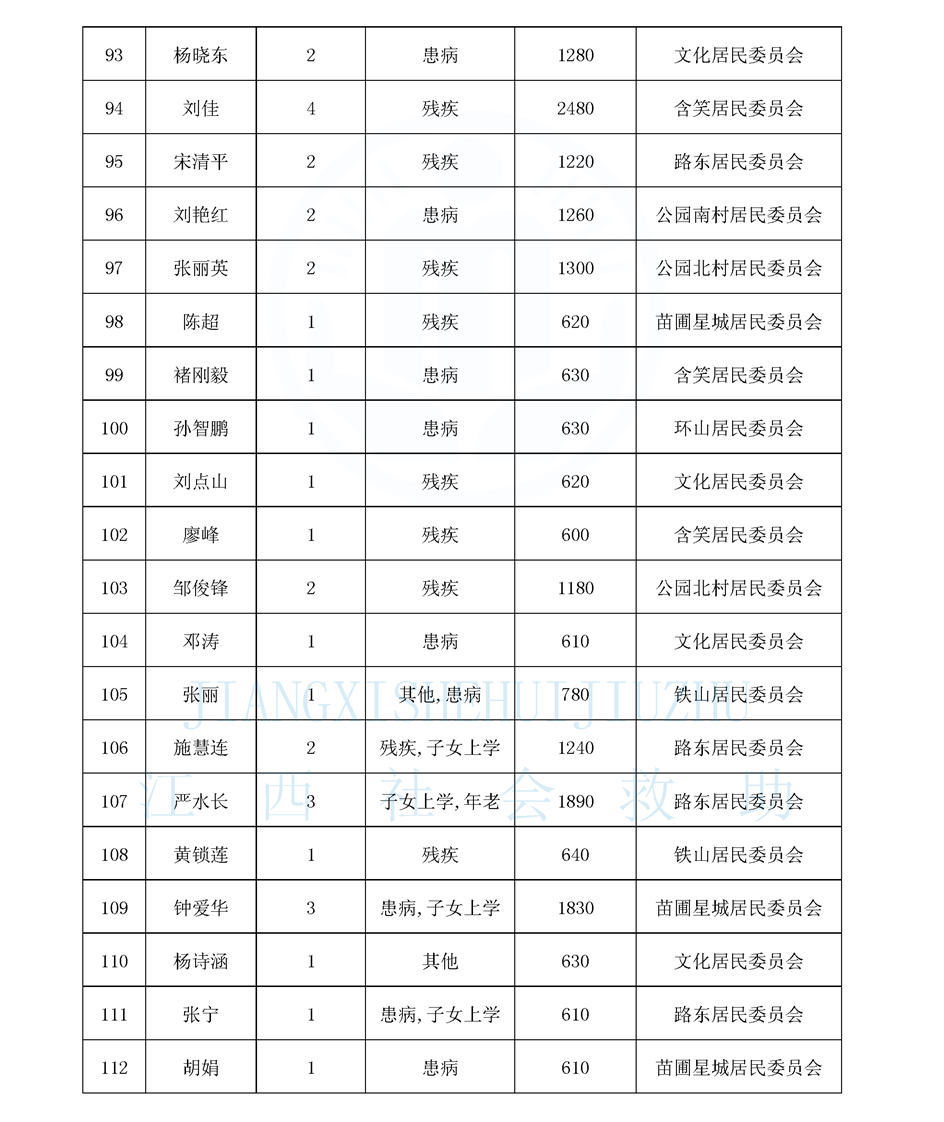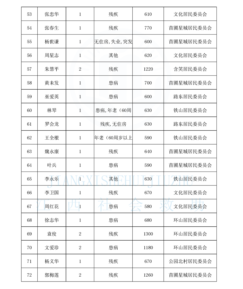 新鋼街道2026年4月份最低生活保障對象公示名單