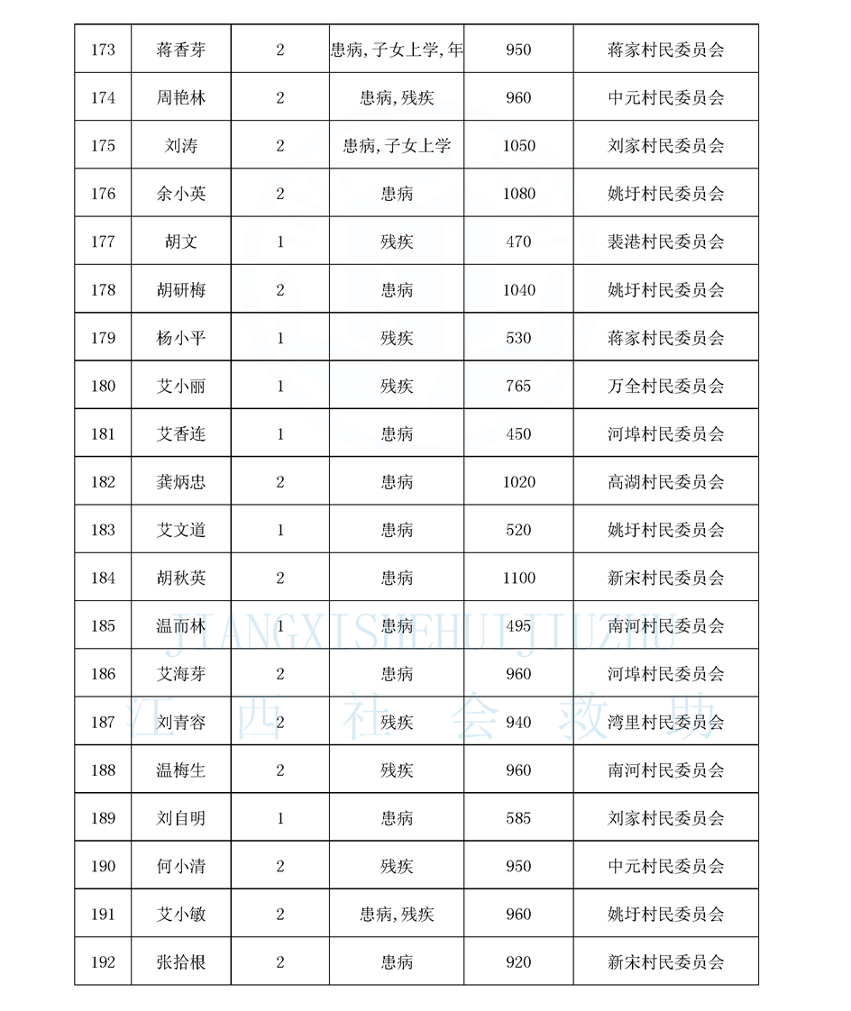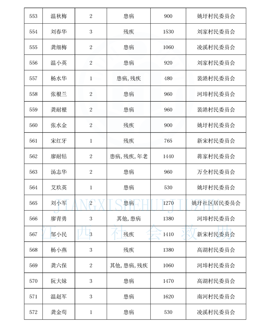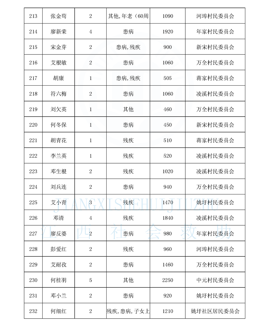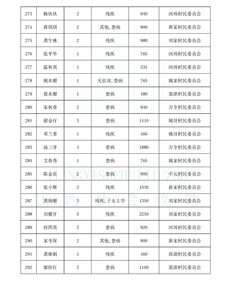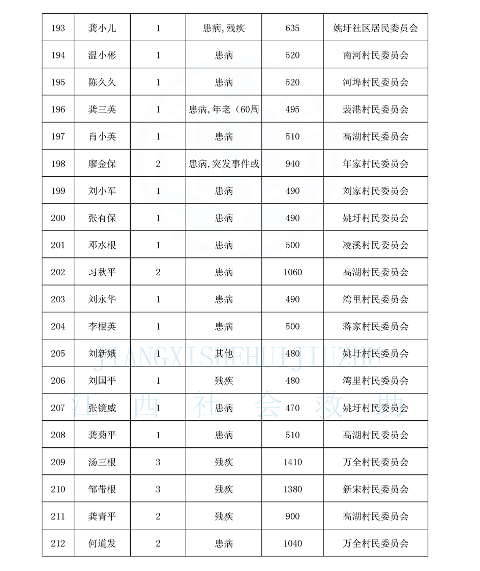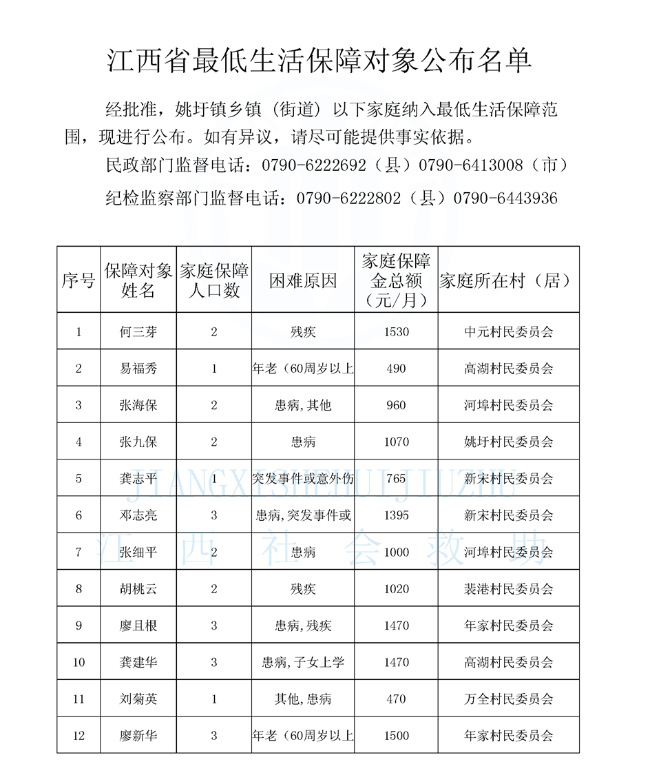 江西省最低生活保障對象公布名單(8月)