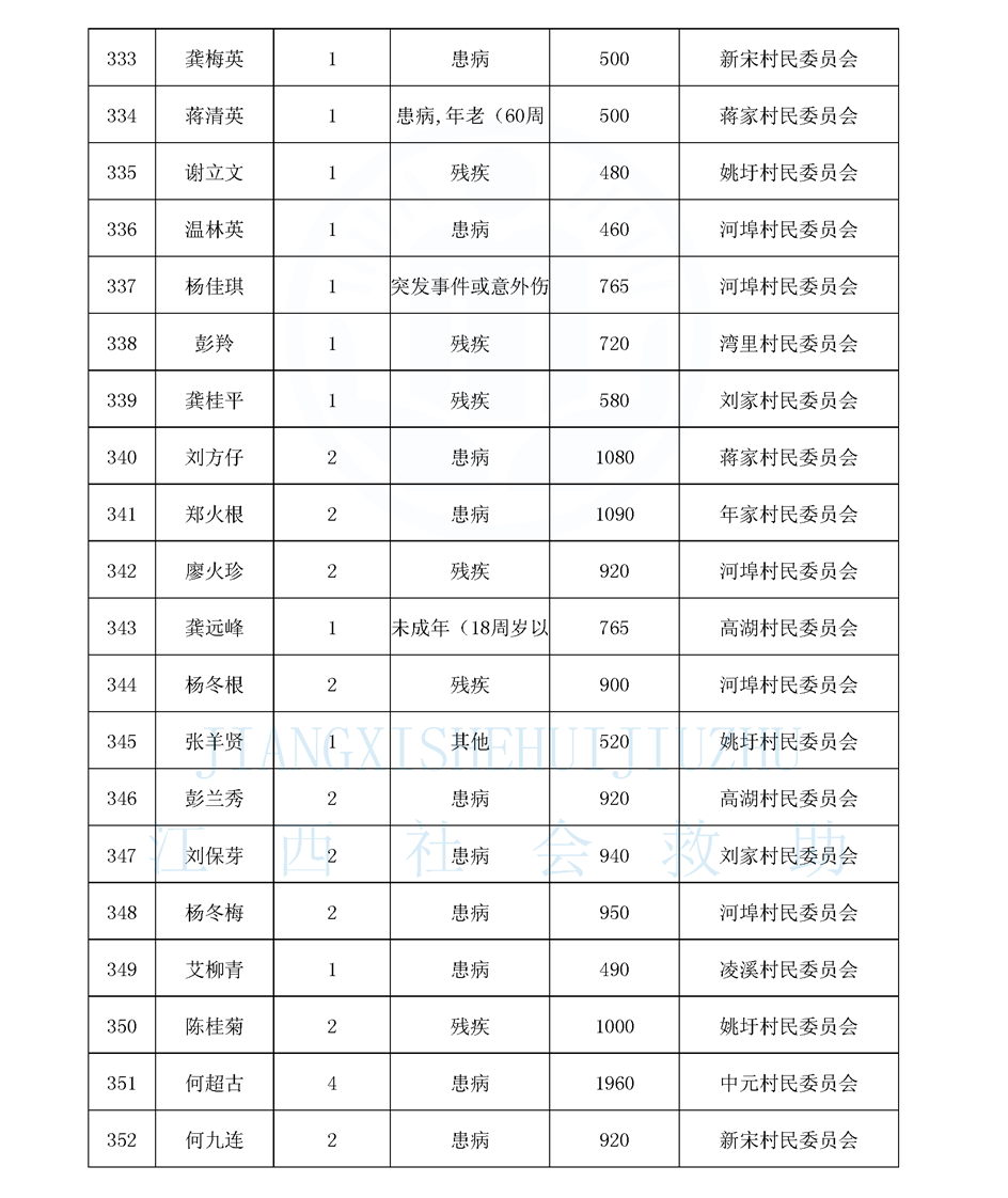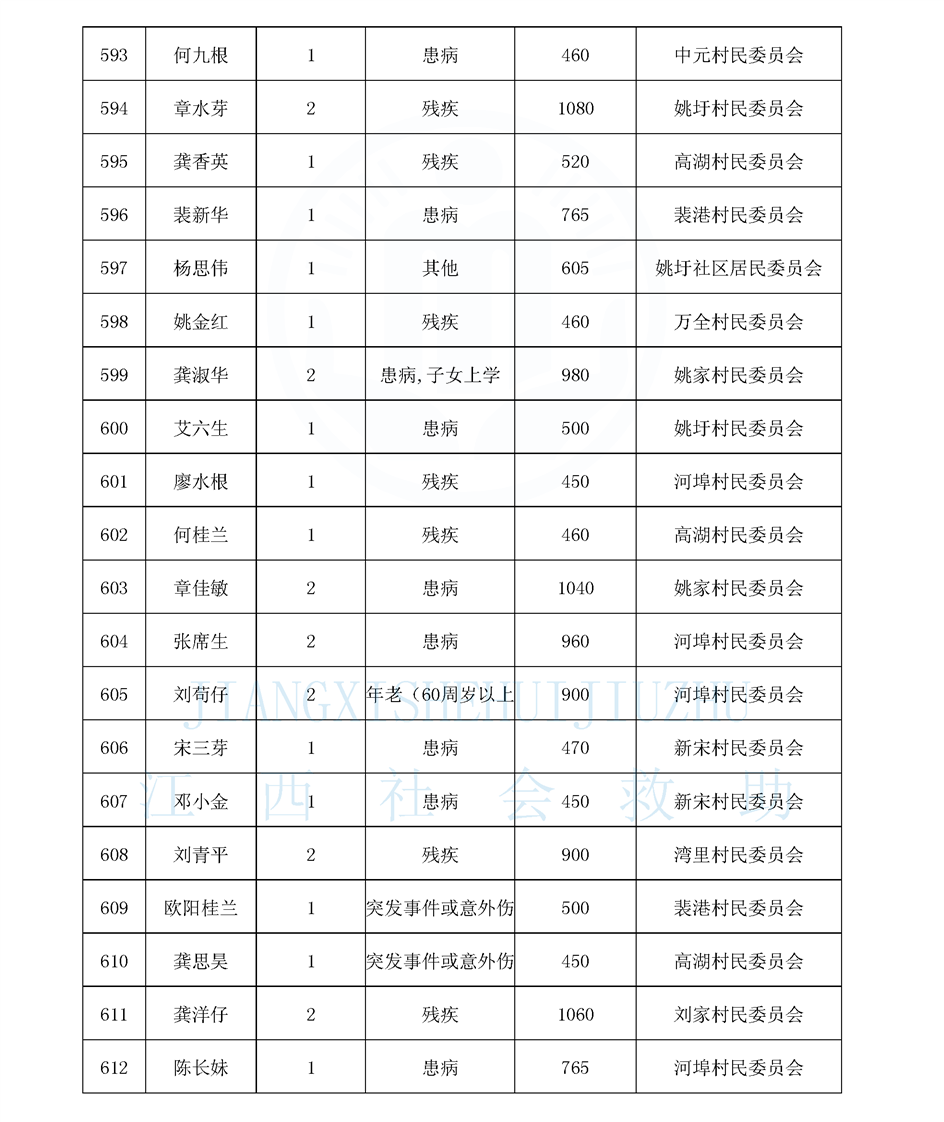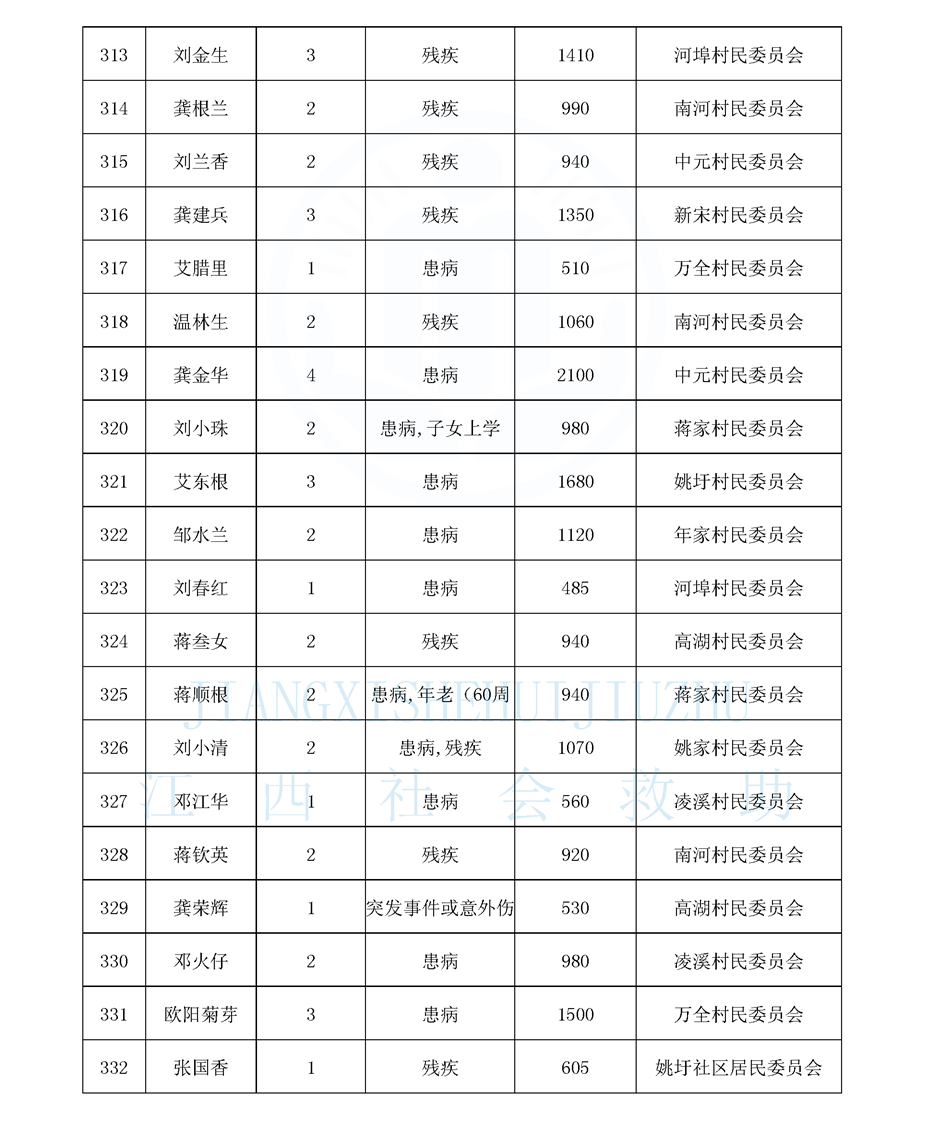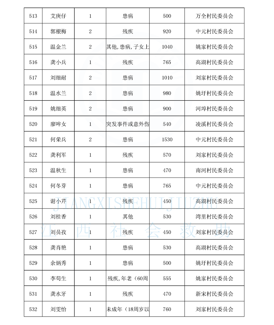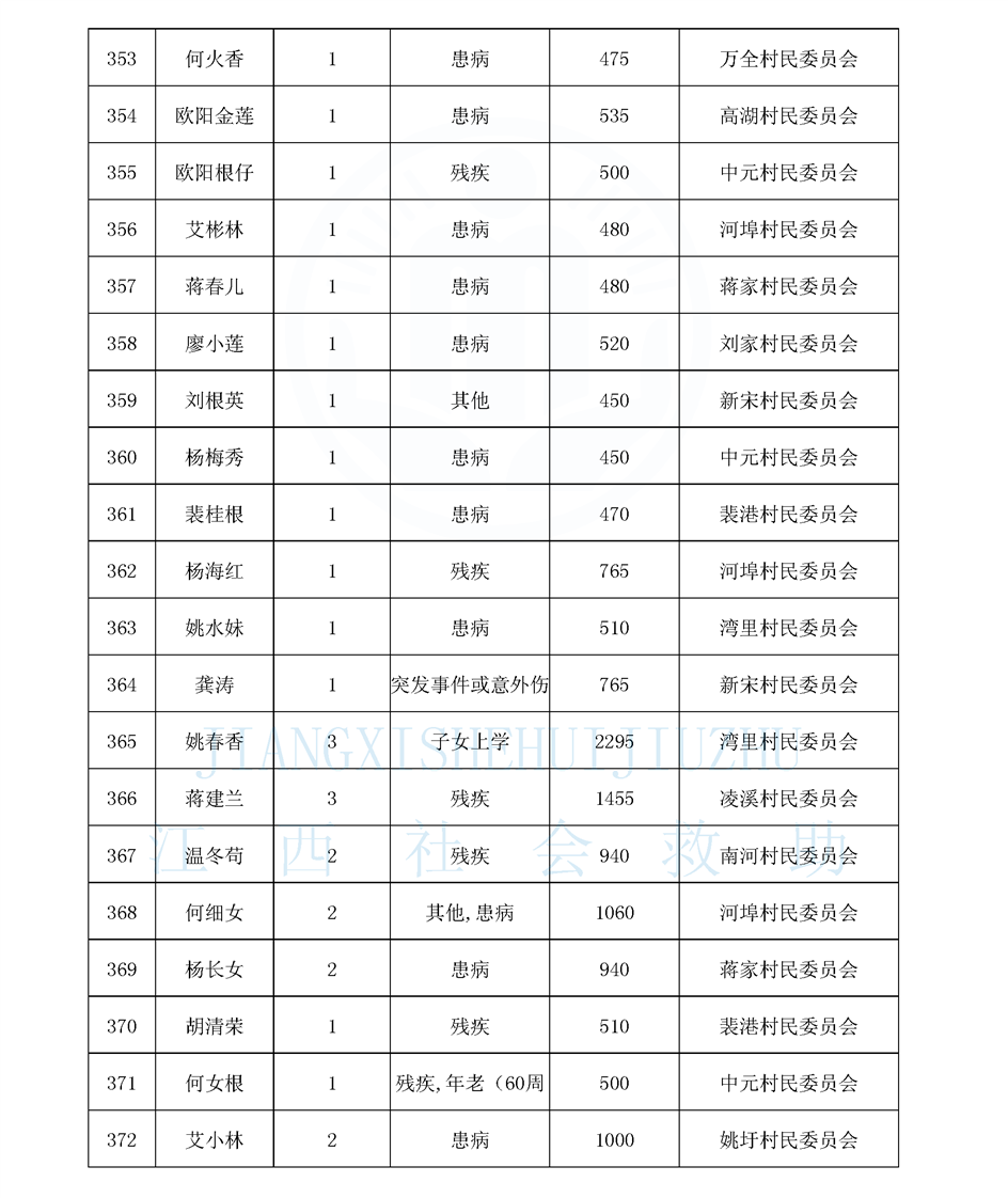 江西省最低生活保障對象公布名單(8月)