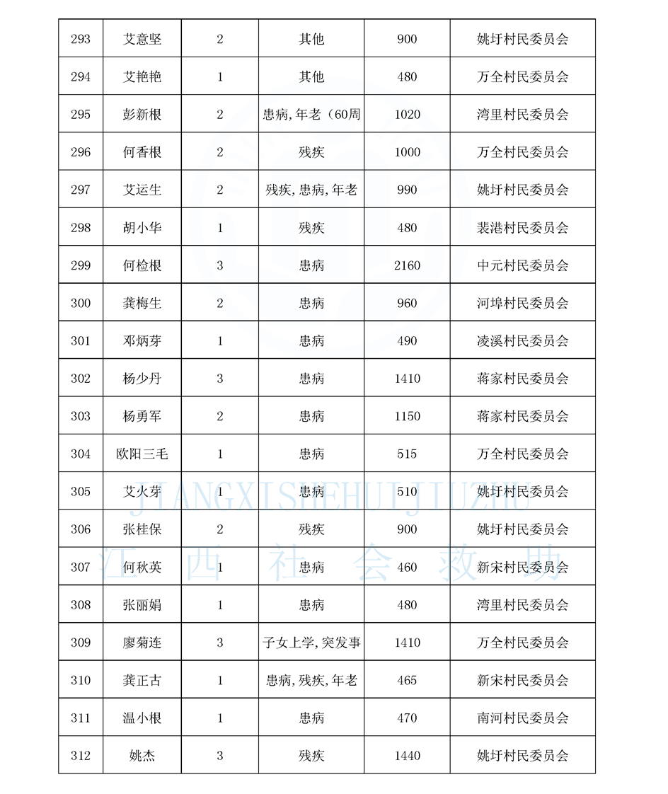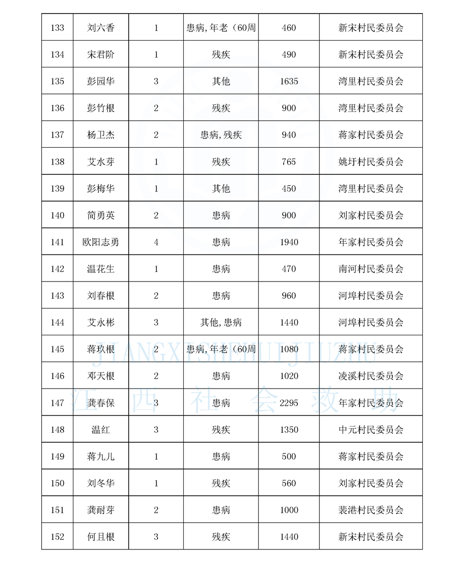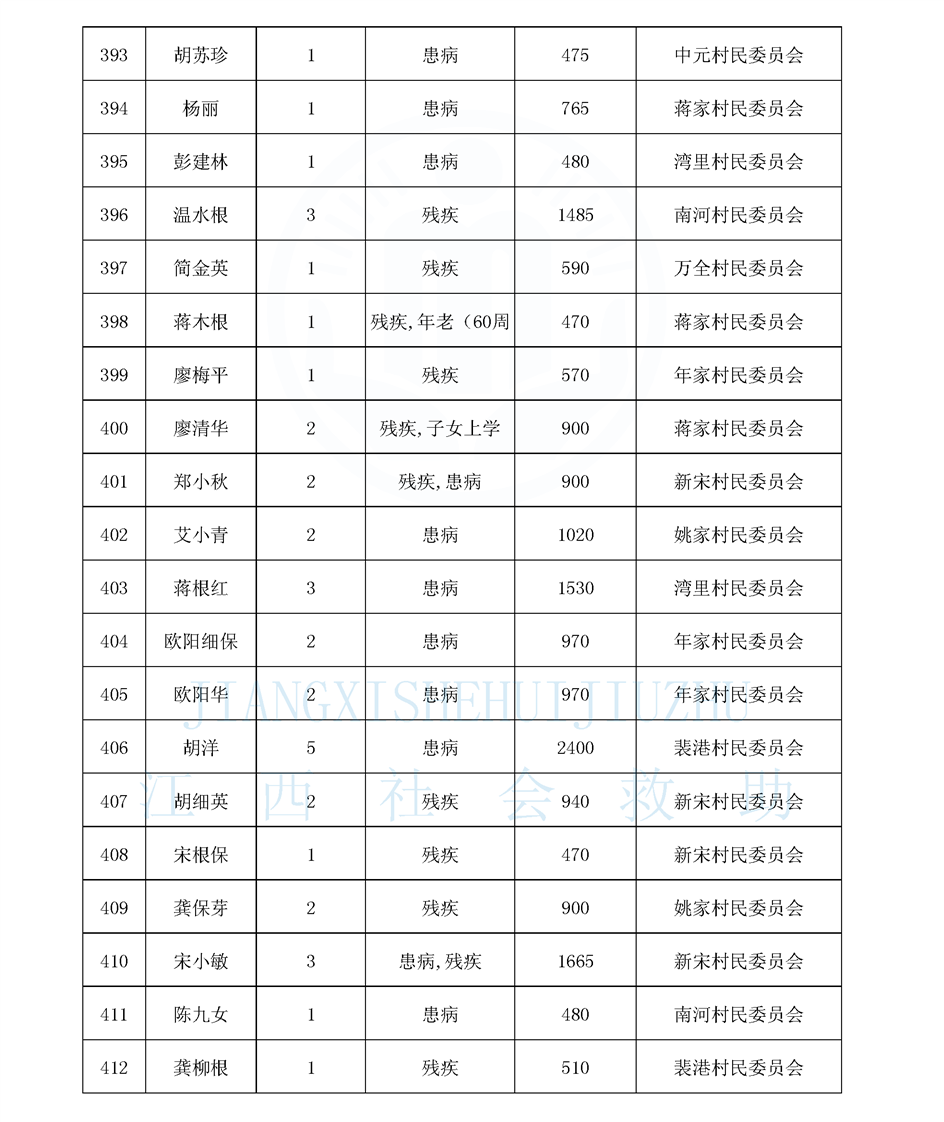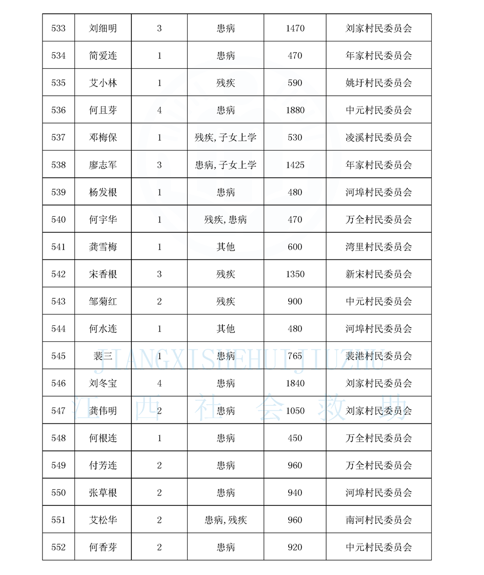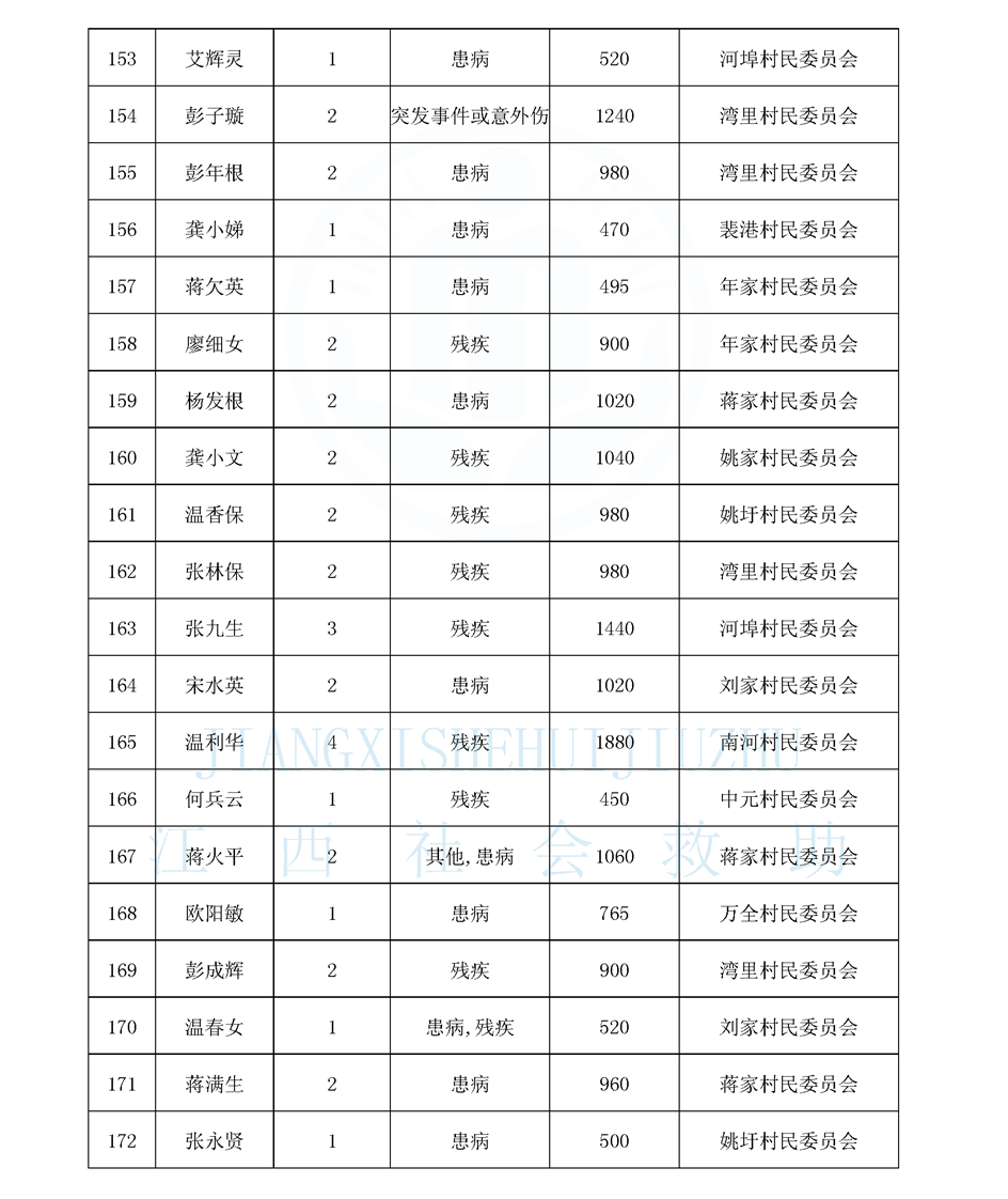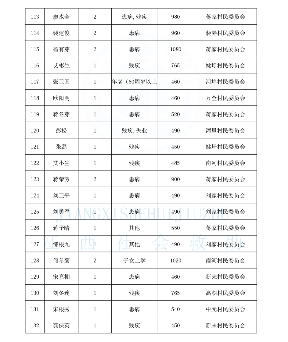 江西省最低生活保障對象公布名單(8月)