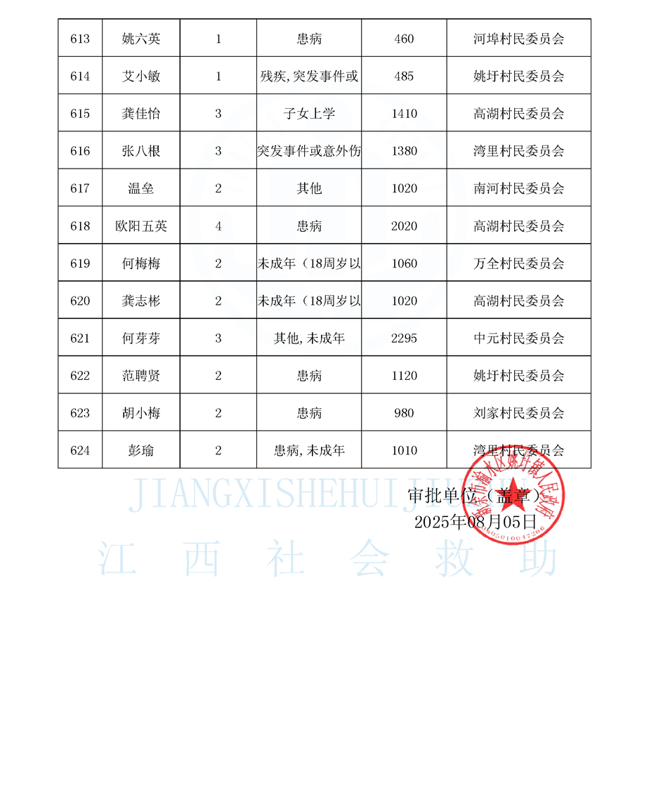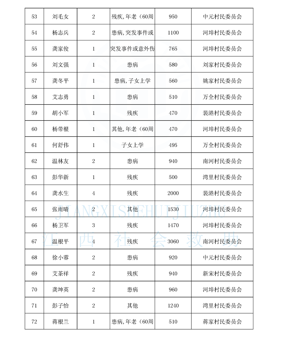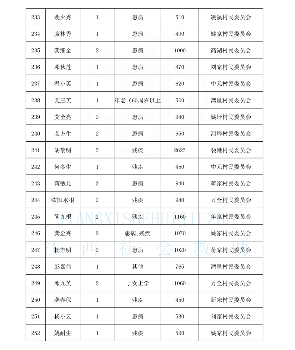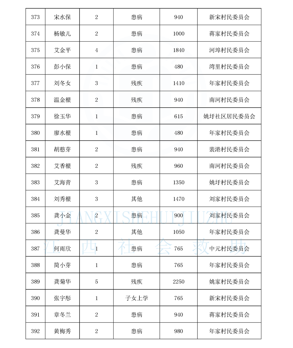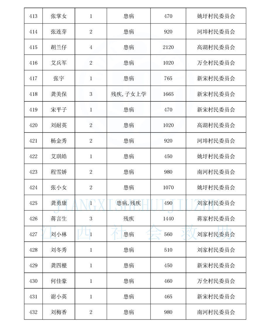 江西省最低生活保障對象公布名單(8月)