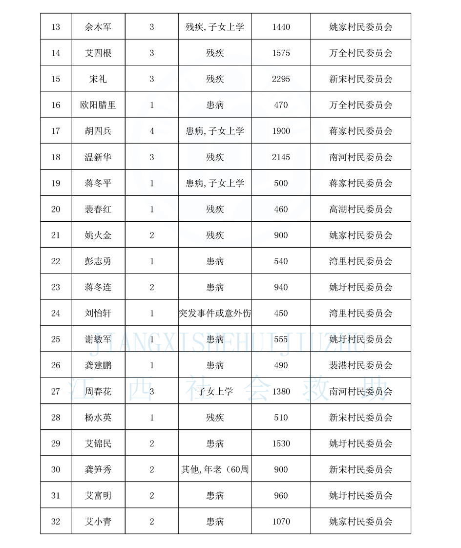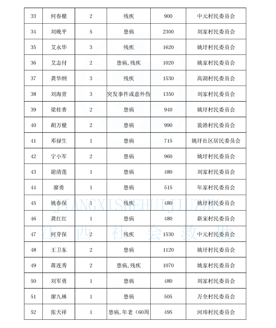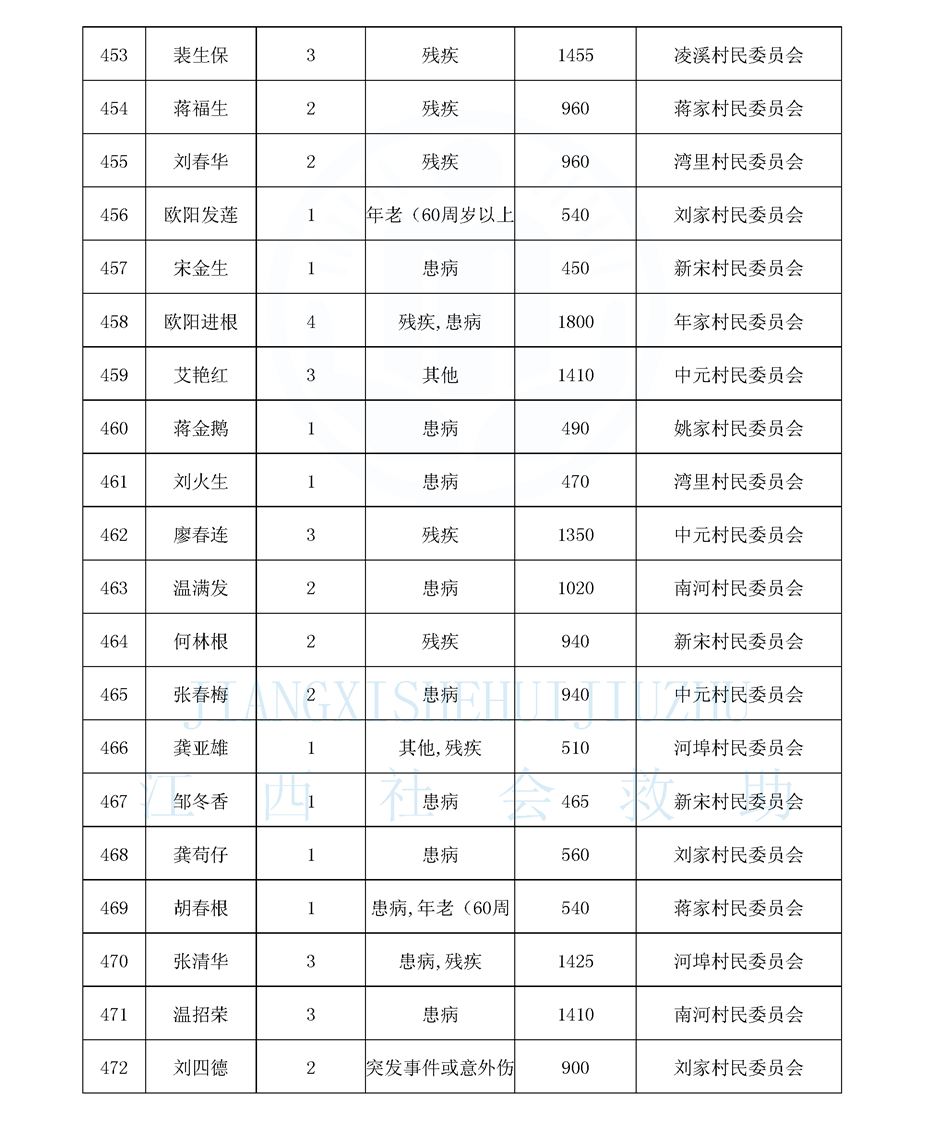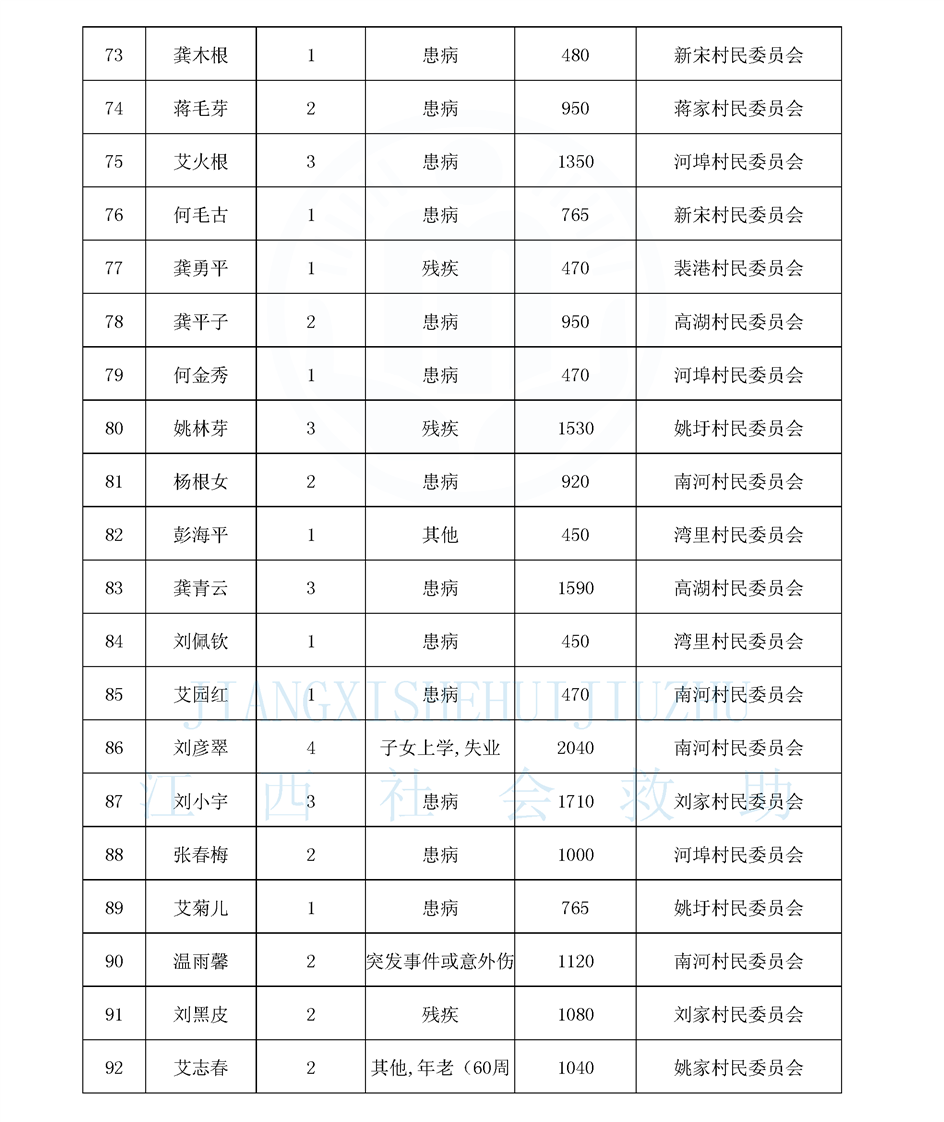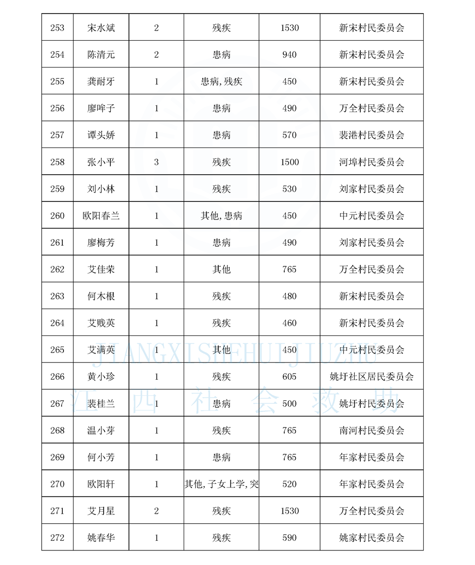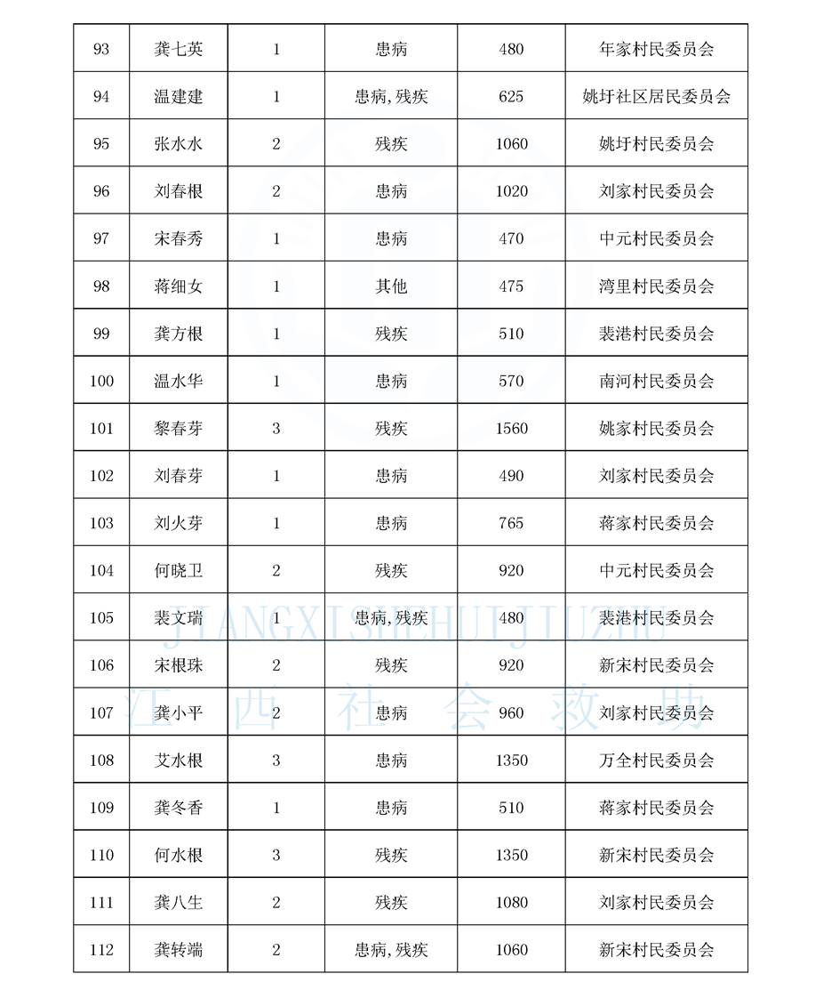 江西省最低生活保障對象公布名單(8月)