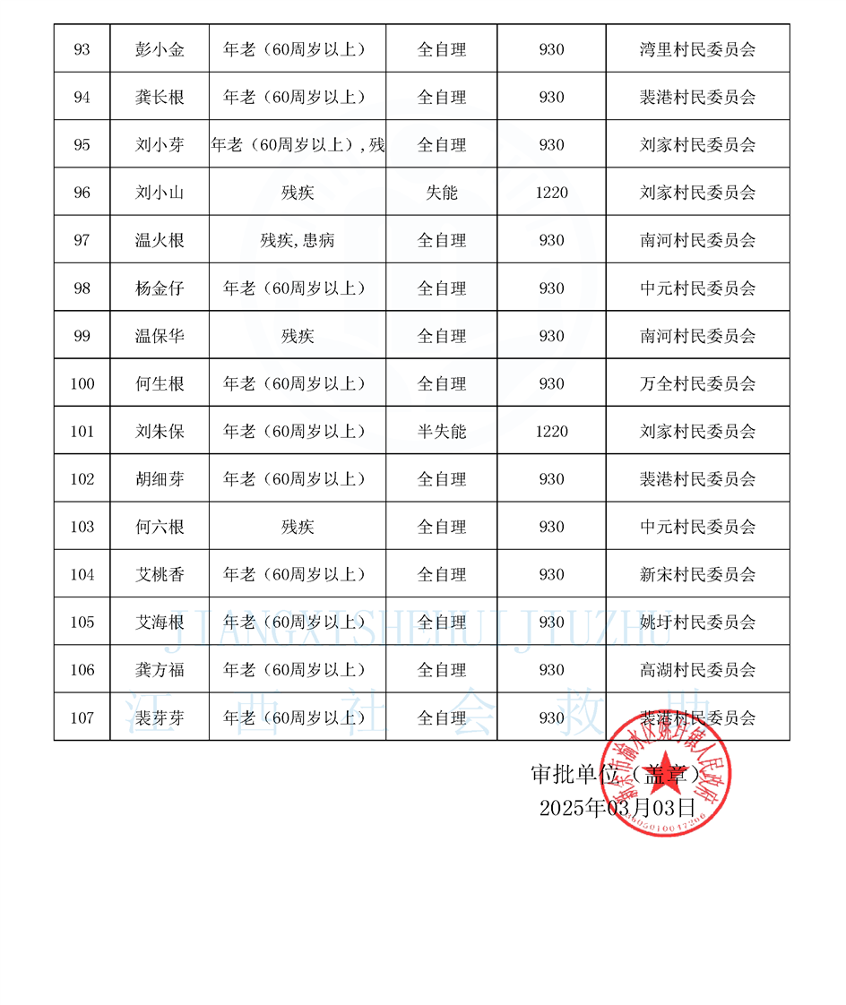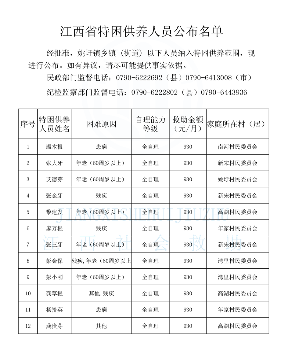 2025年3月姚圩鎮(zhèn)特困公示