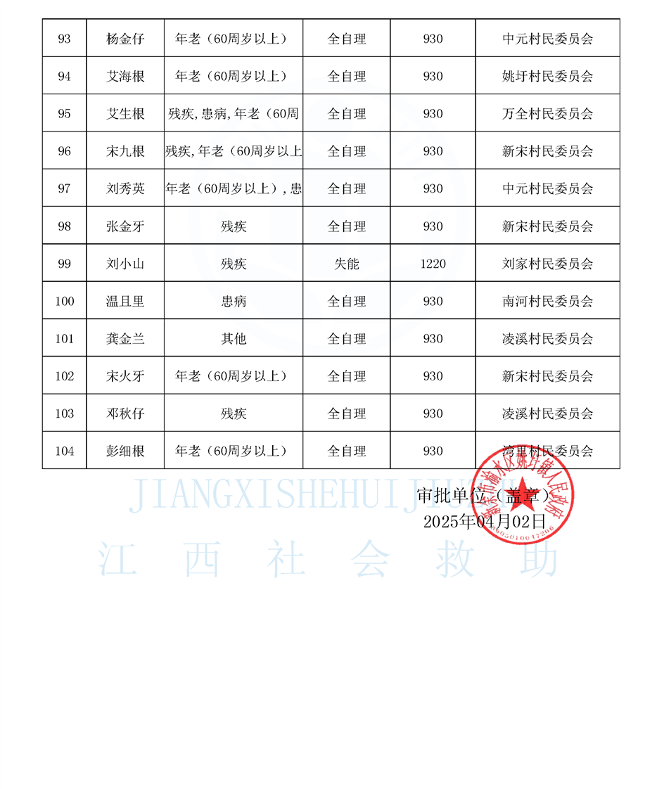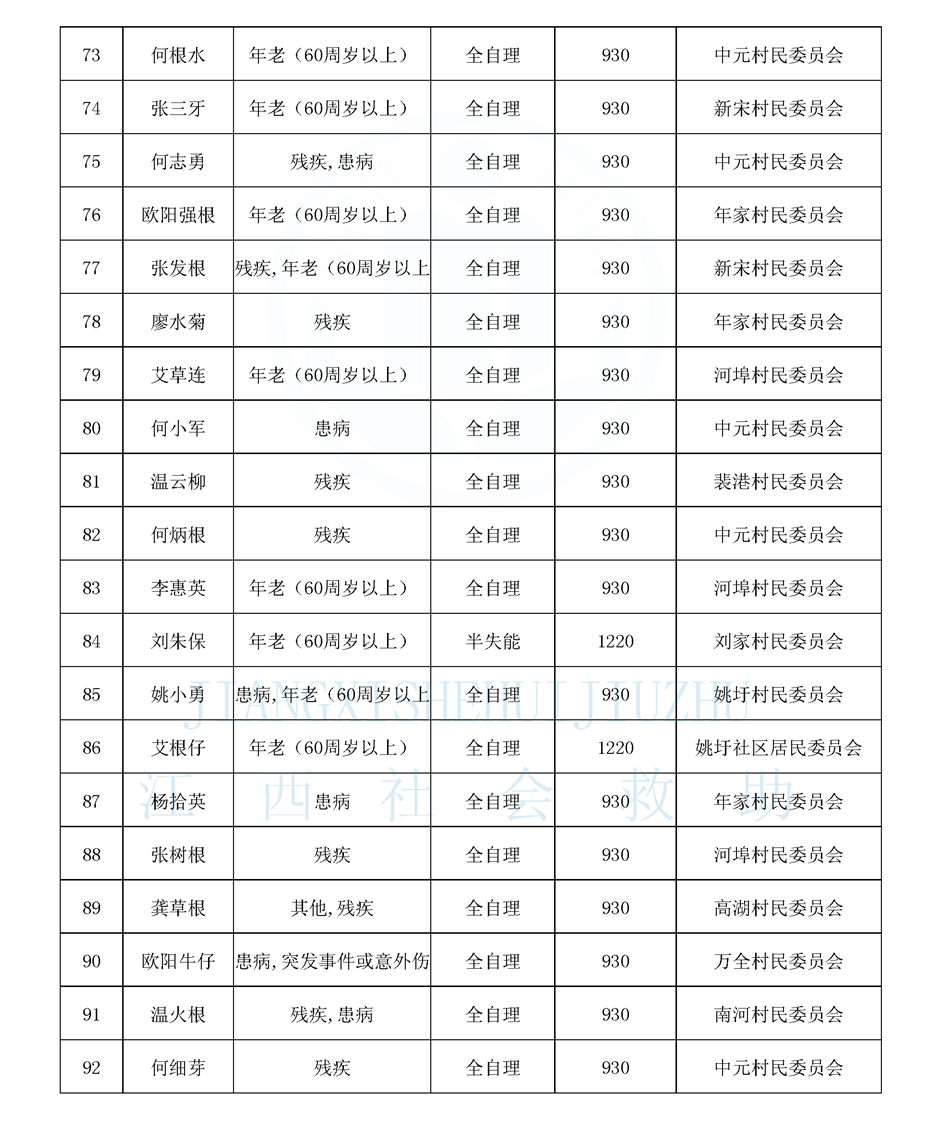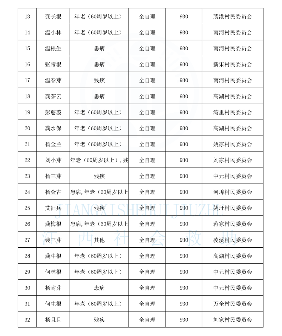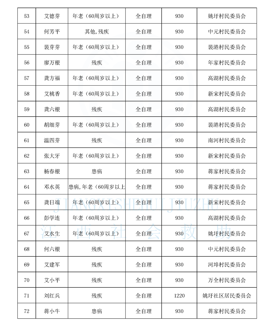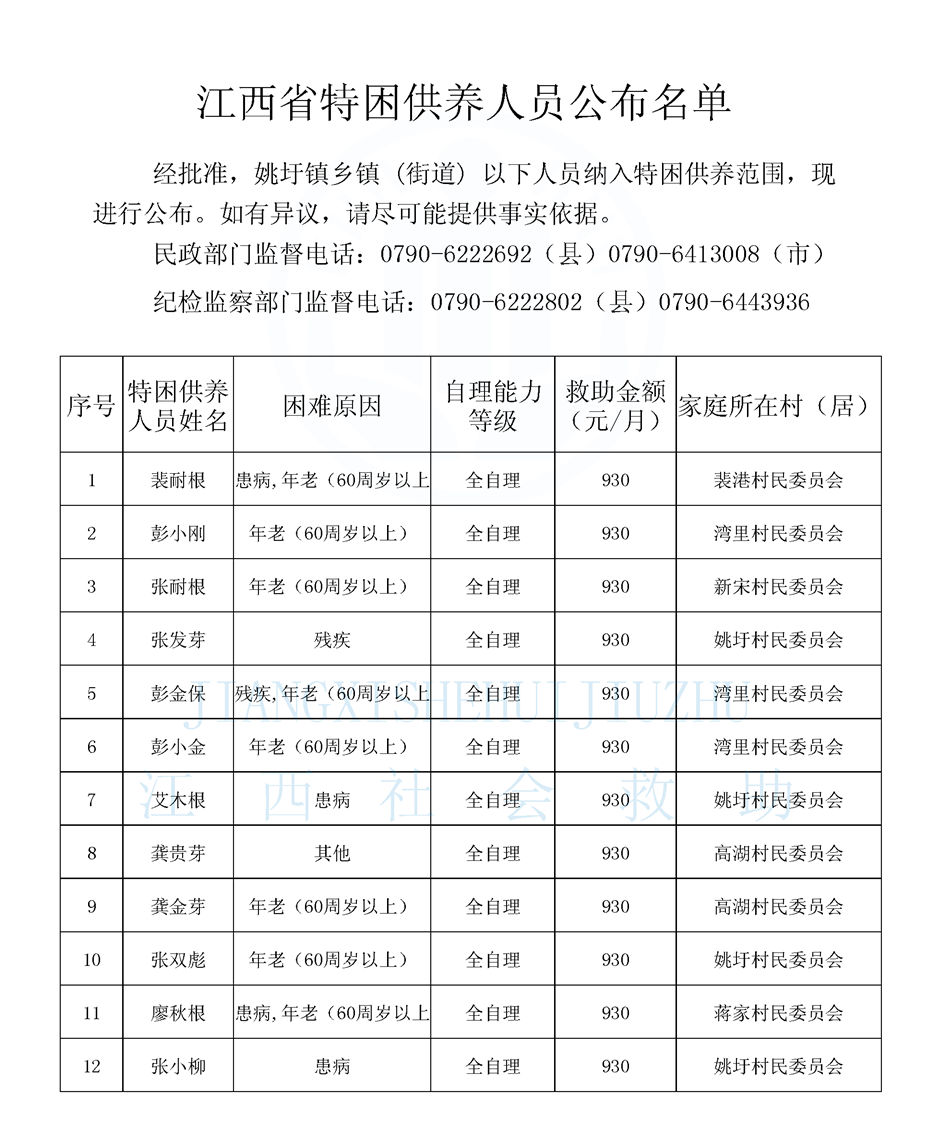 2025年4月姚圩鎮特困公示名單
