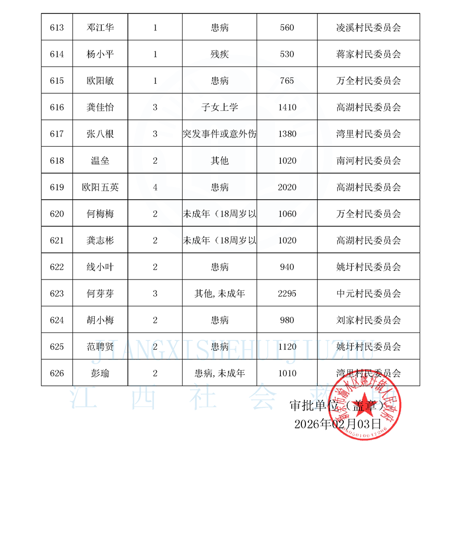 2026年2月低保公示名單