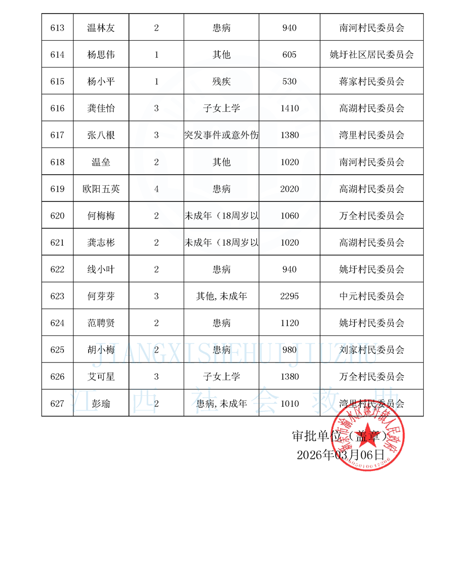 2026年3月低保待長期公布名單