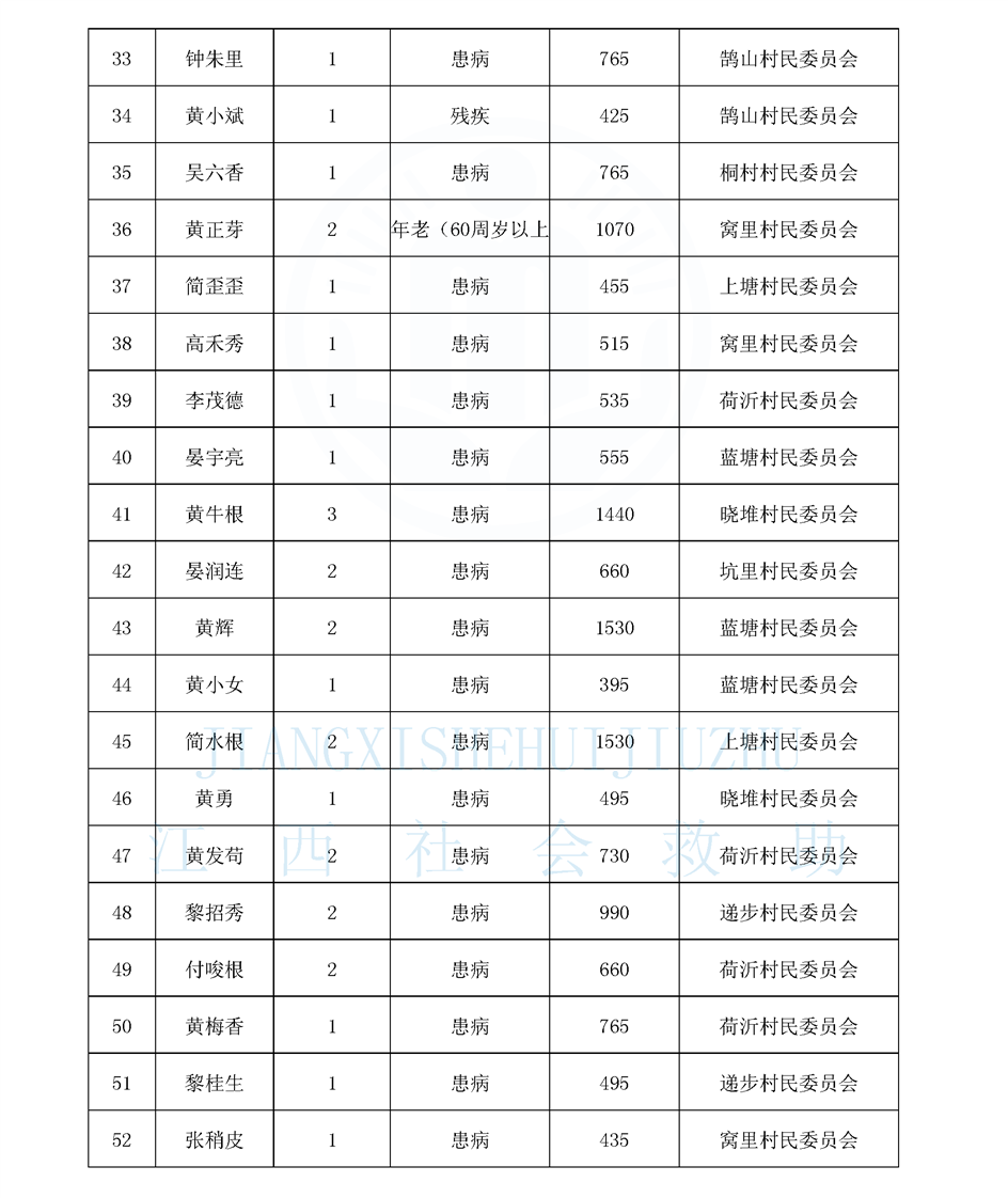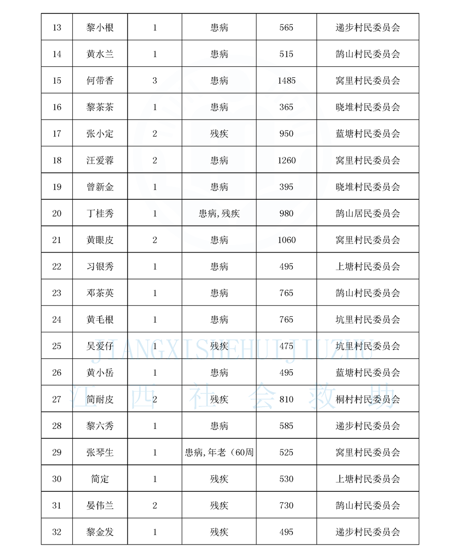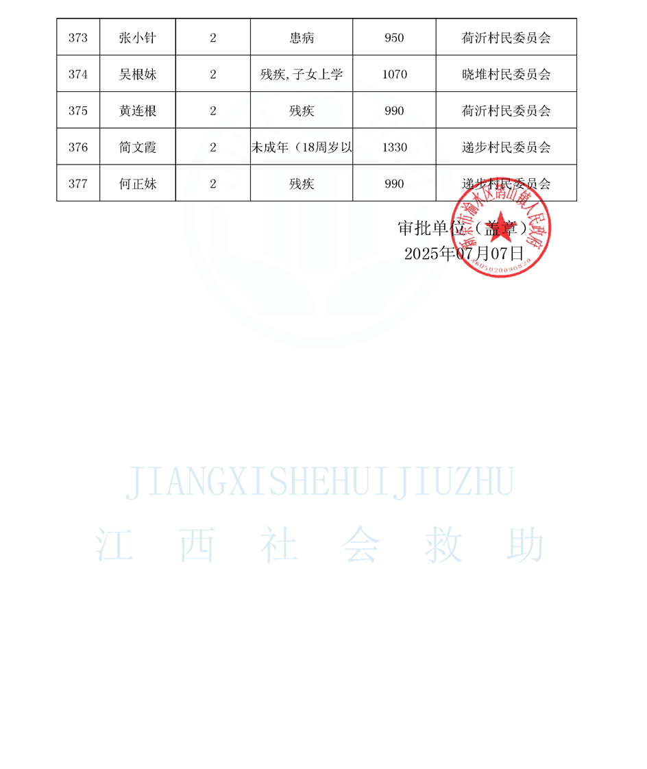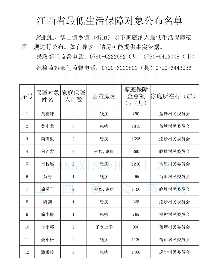 鵠山鎮2025年7月最低生活保障對象公布名單
