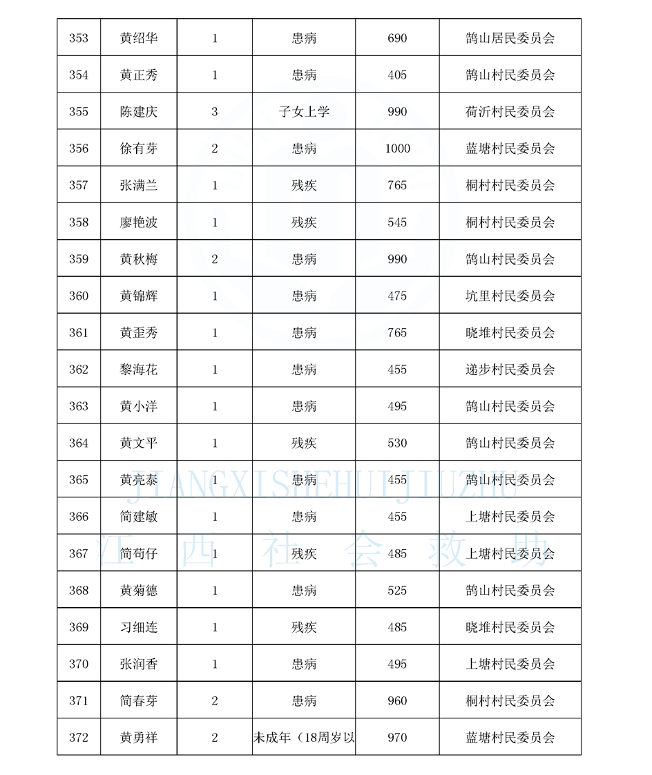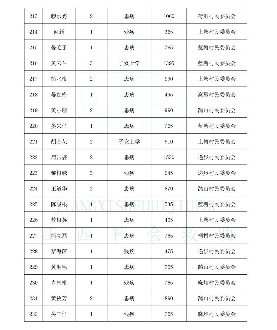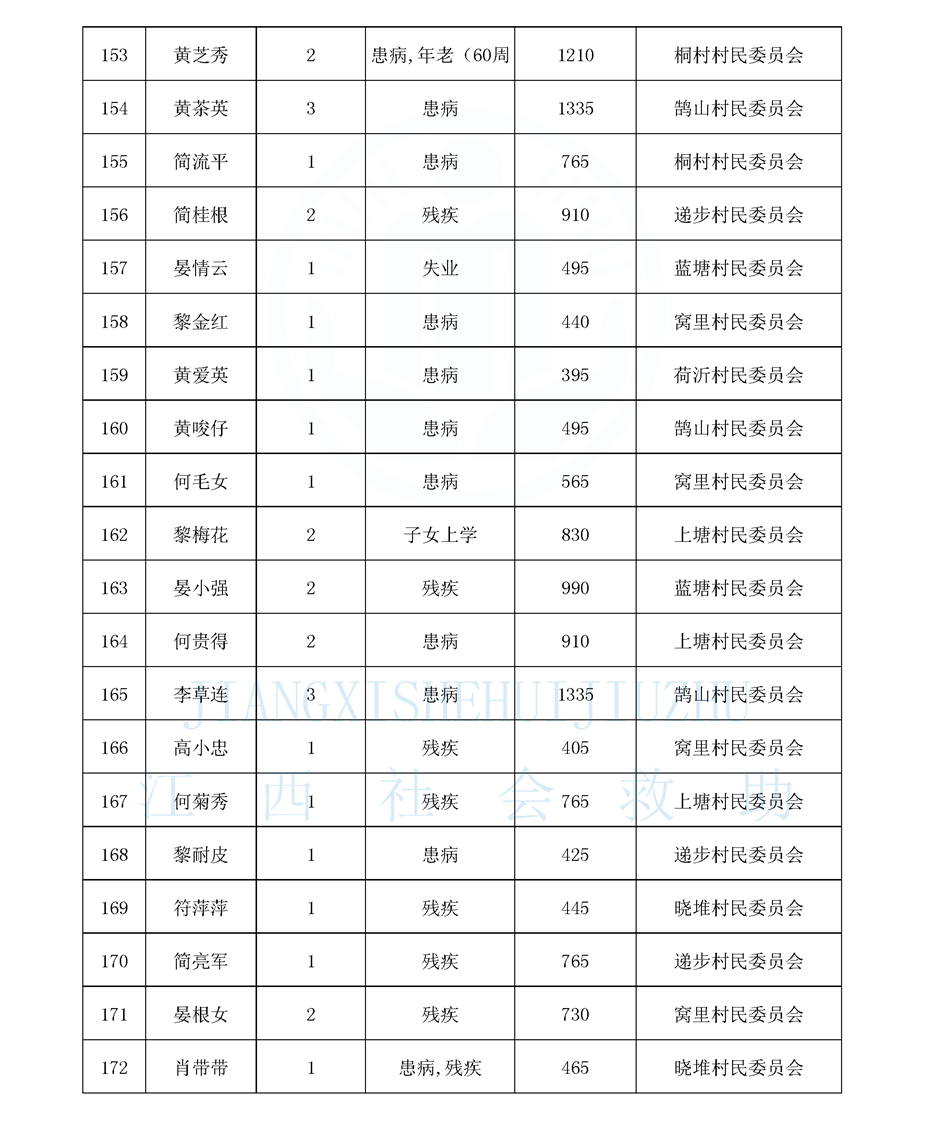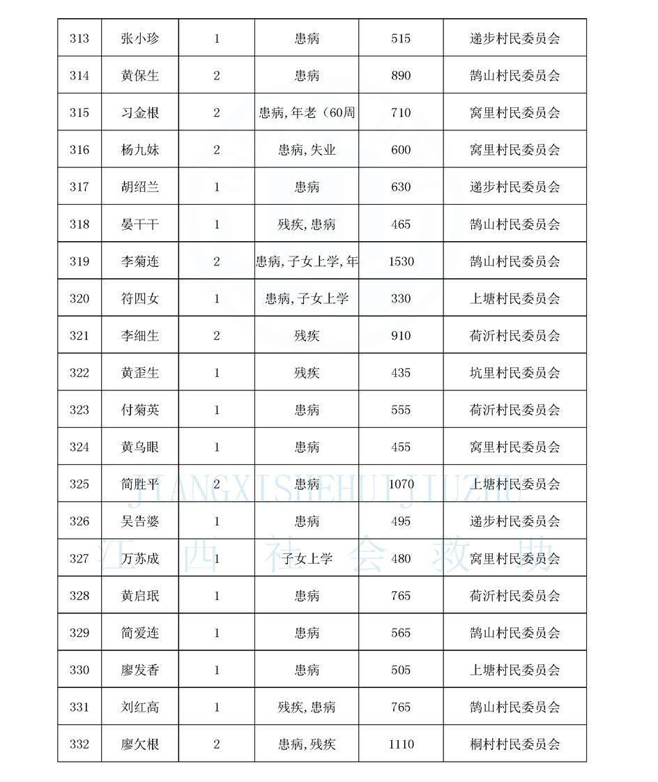 鵠山鎮2025年7月最低生活保障對象公布名單