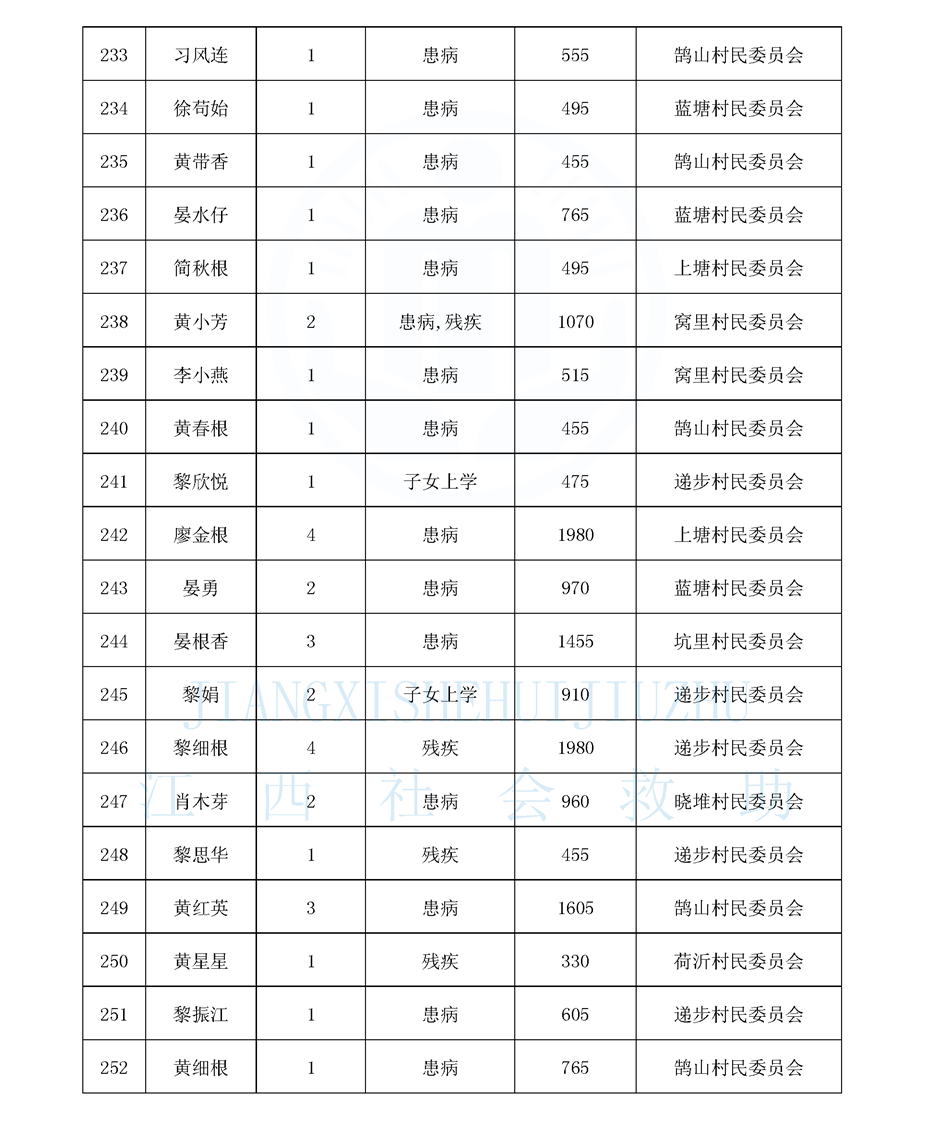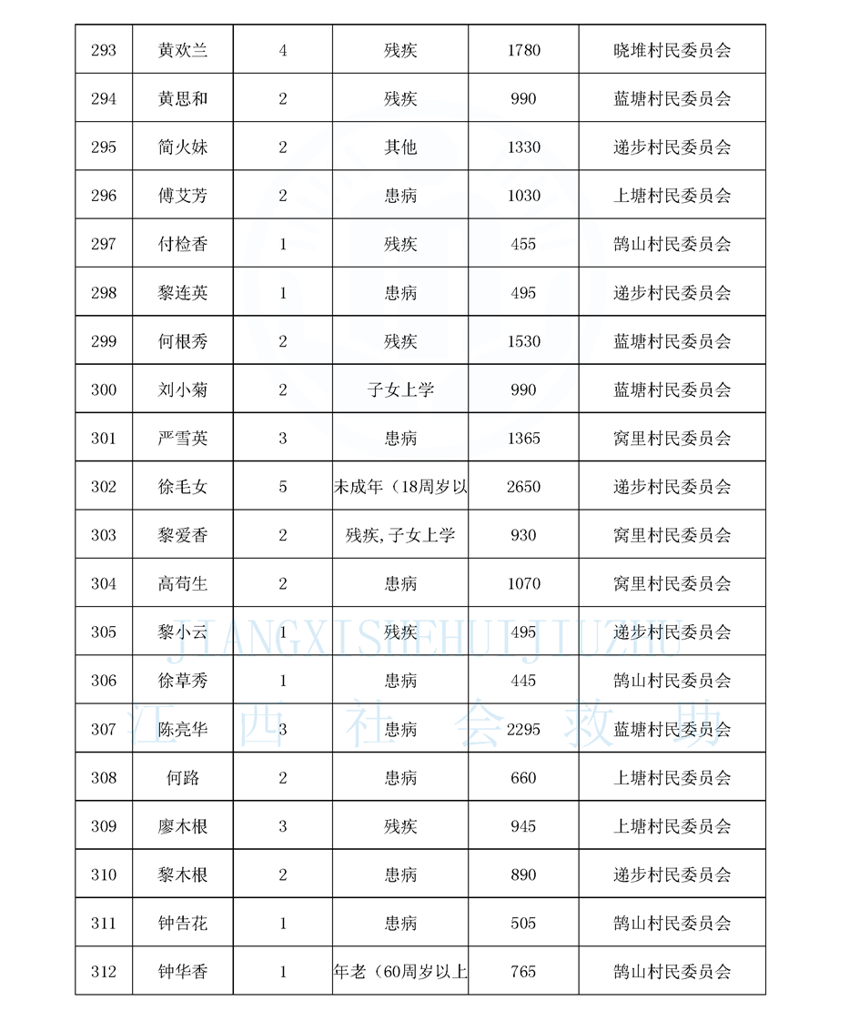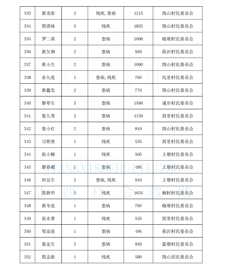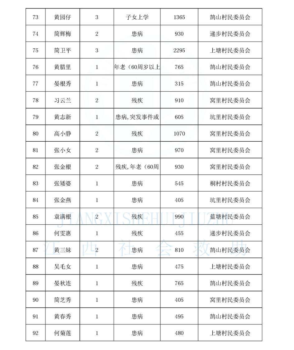 鵠山鎮2025年7月最低生活保障對象公布名單