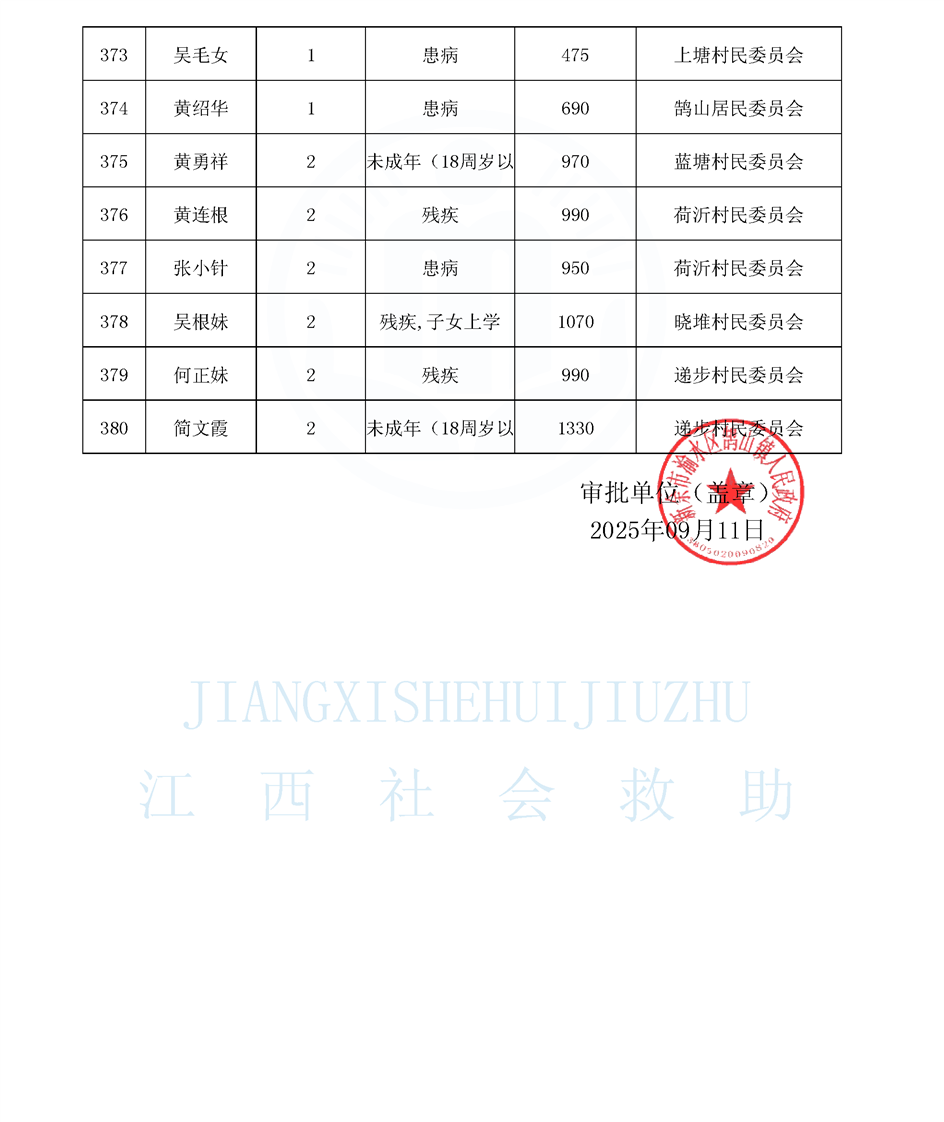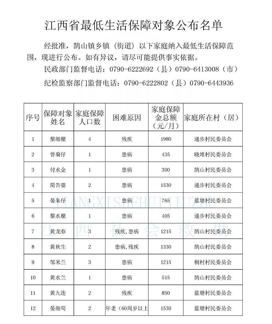 鵠山鎮(zhèn)2025年9月最低生活保障對(duì)象公布名單