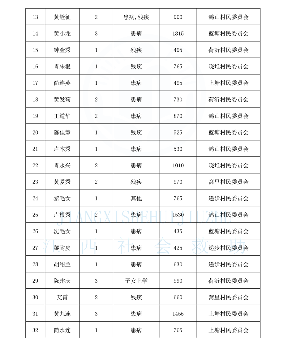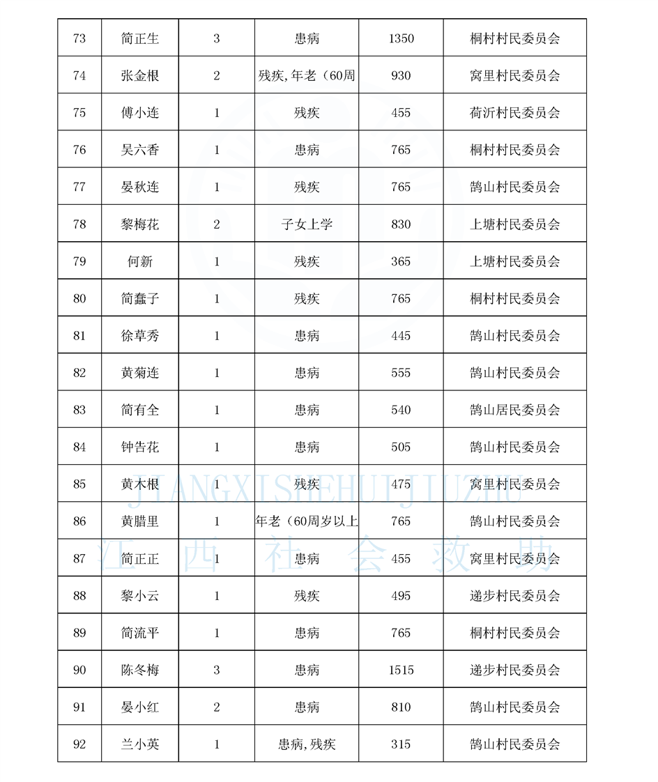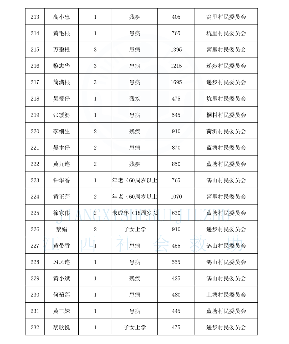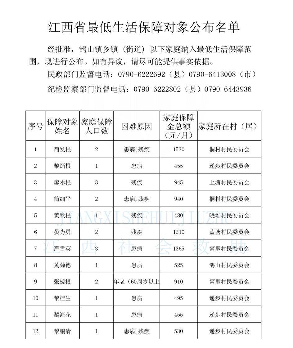 鵠山鎮(zhèn)2025年8月最低生活保障對象公布名單