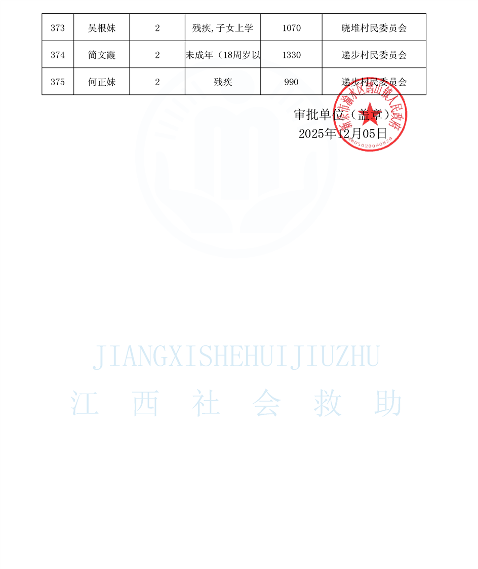 鵠山鎮2025年12月最低生活保障對象公布名單