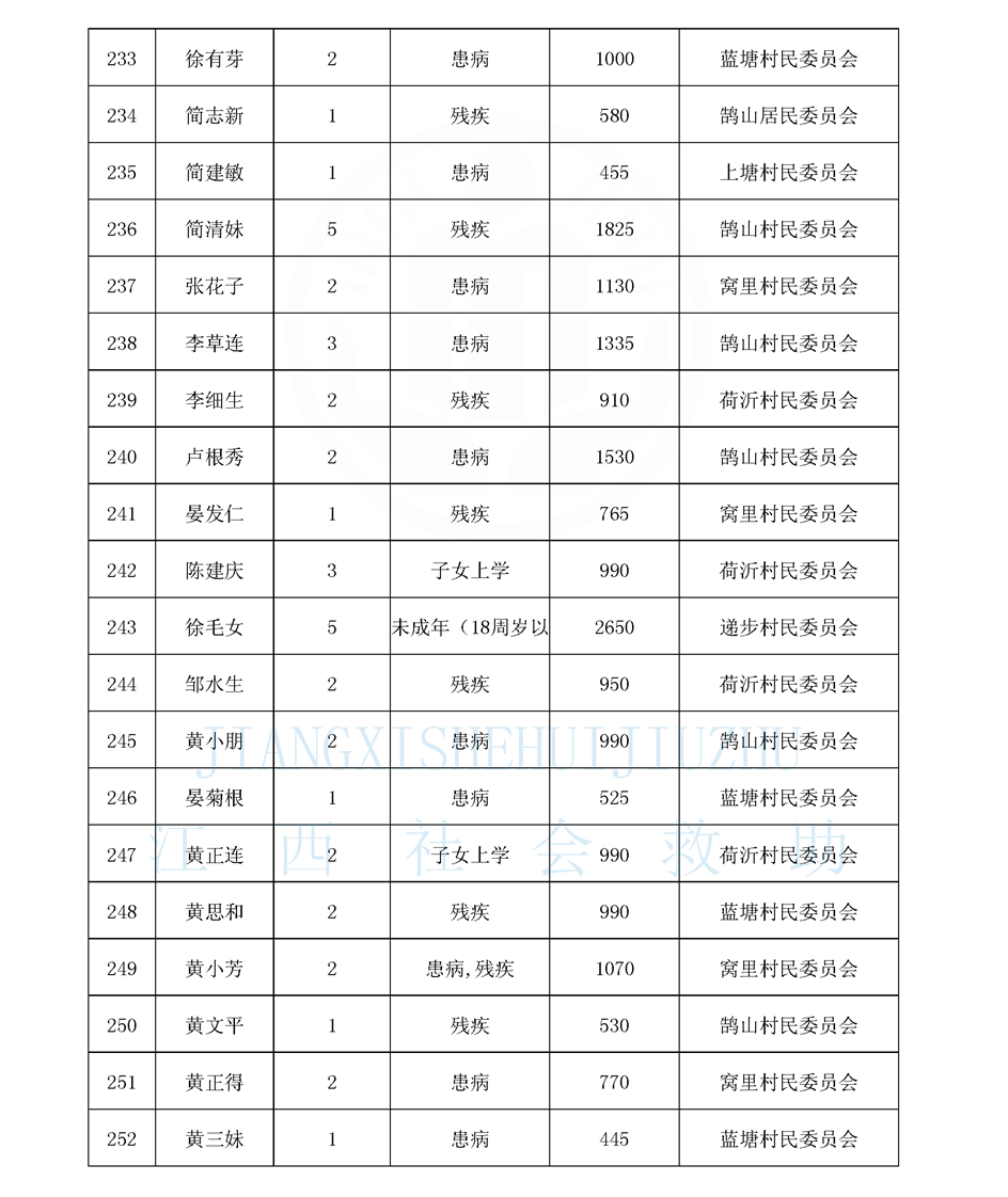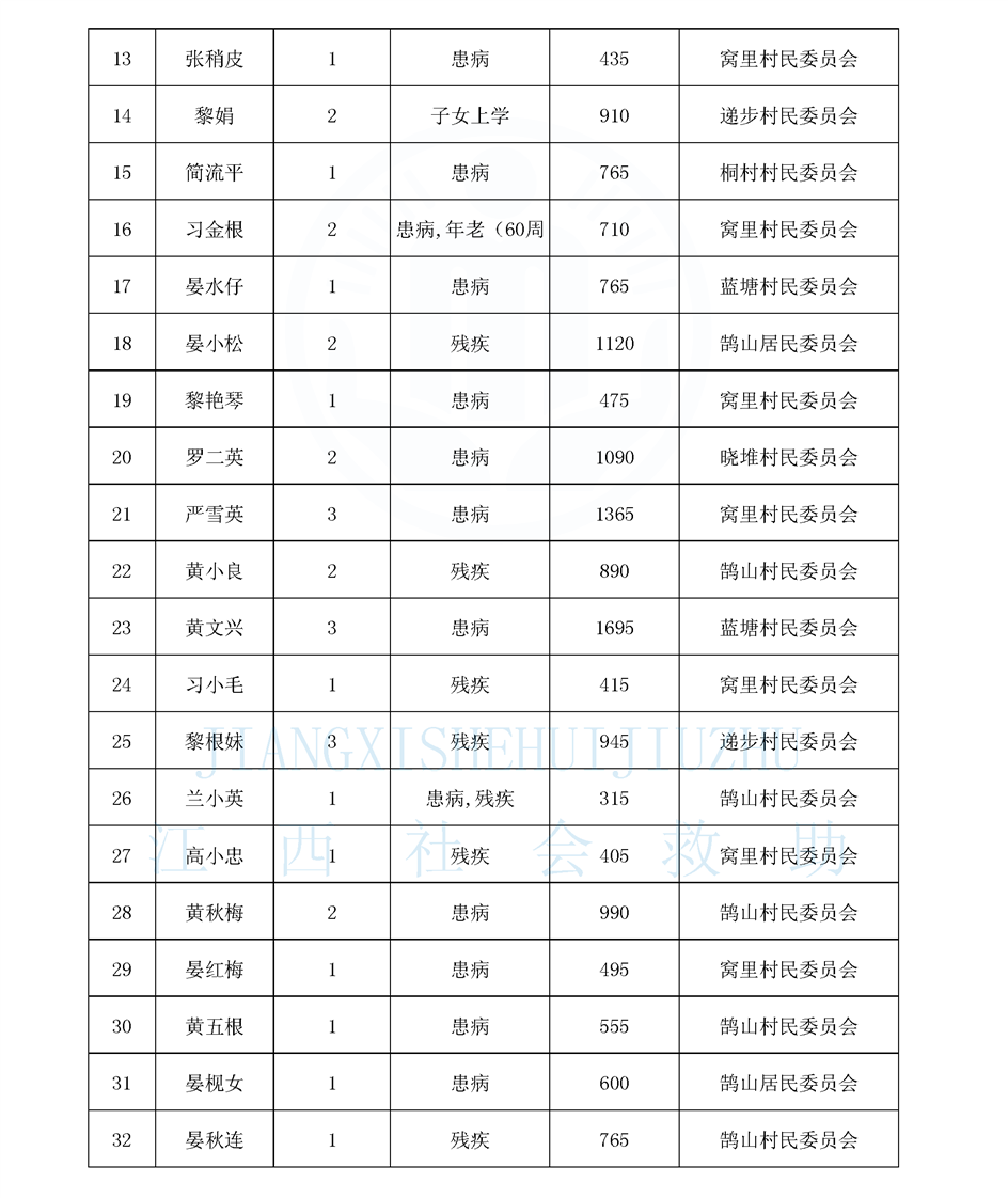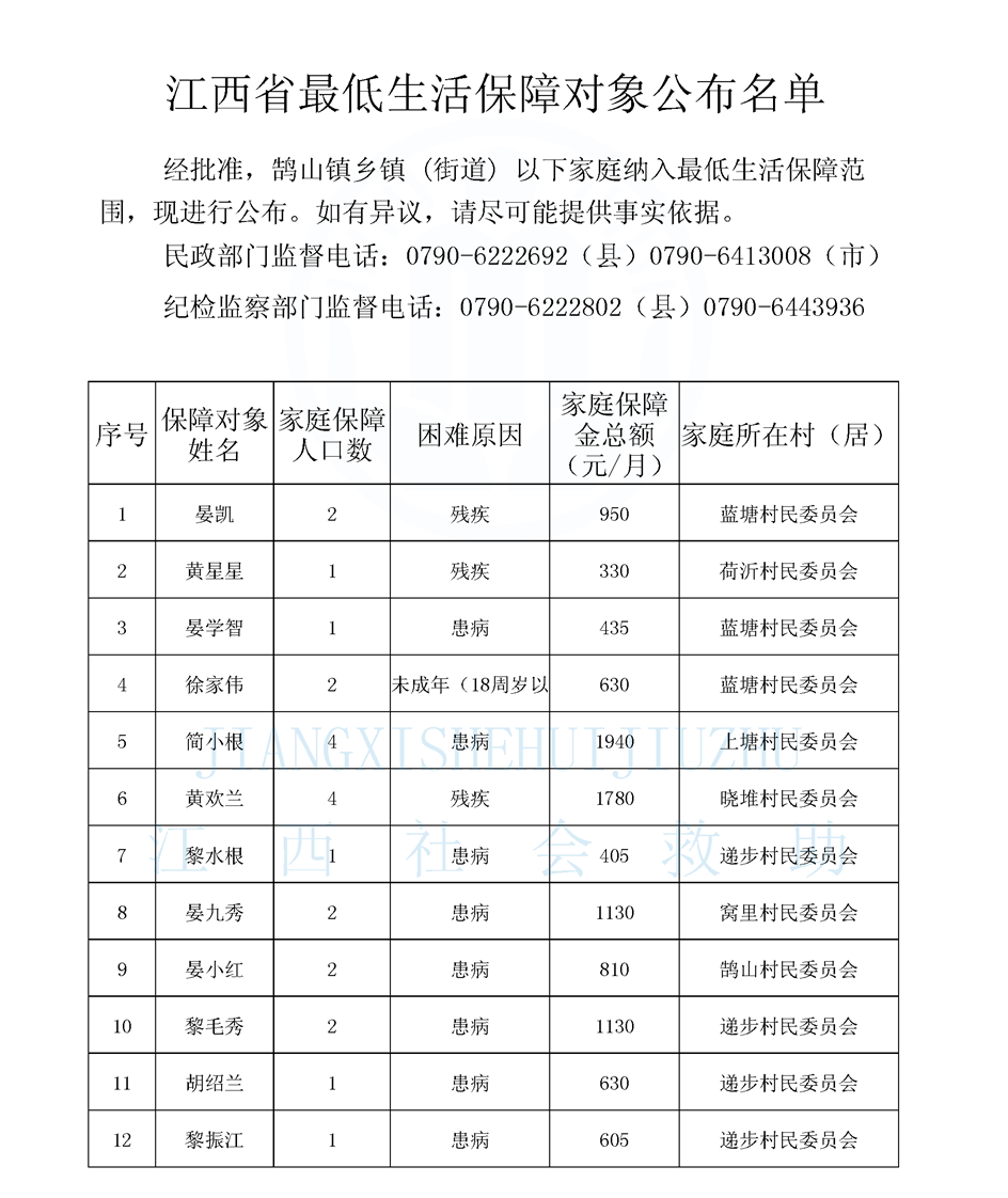 鵠山鎮(zhèn)2025年6月最低生活保障對象公布名單