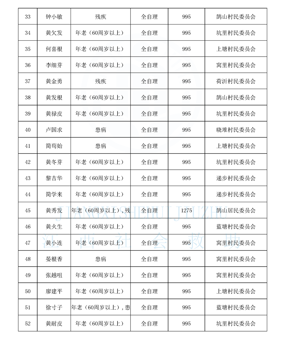 鵠山鎮2026年1月特困供養人員公布名單