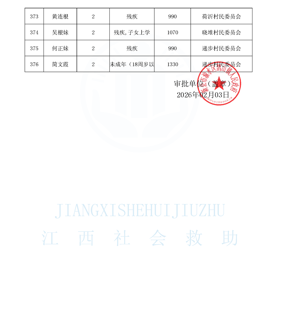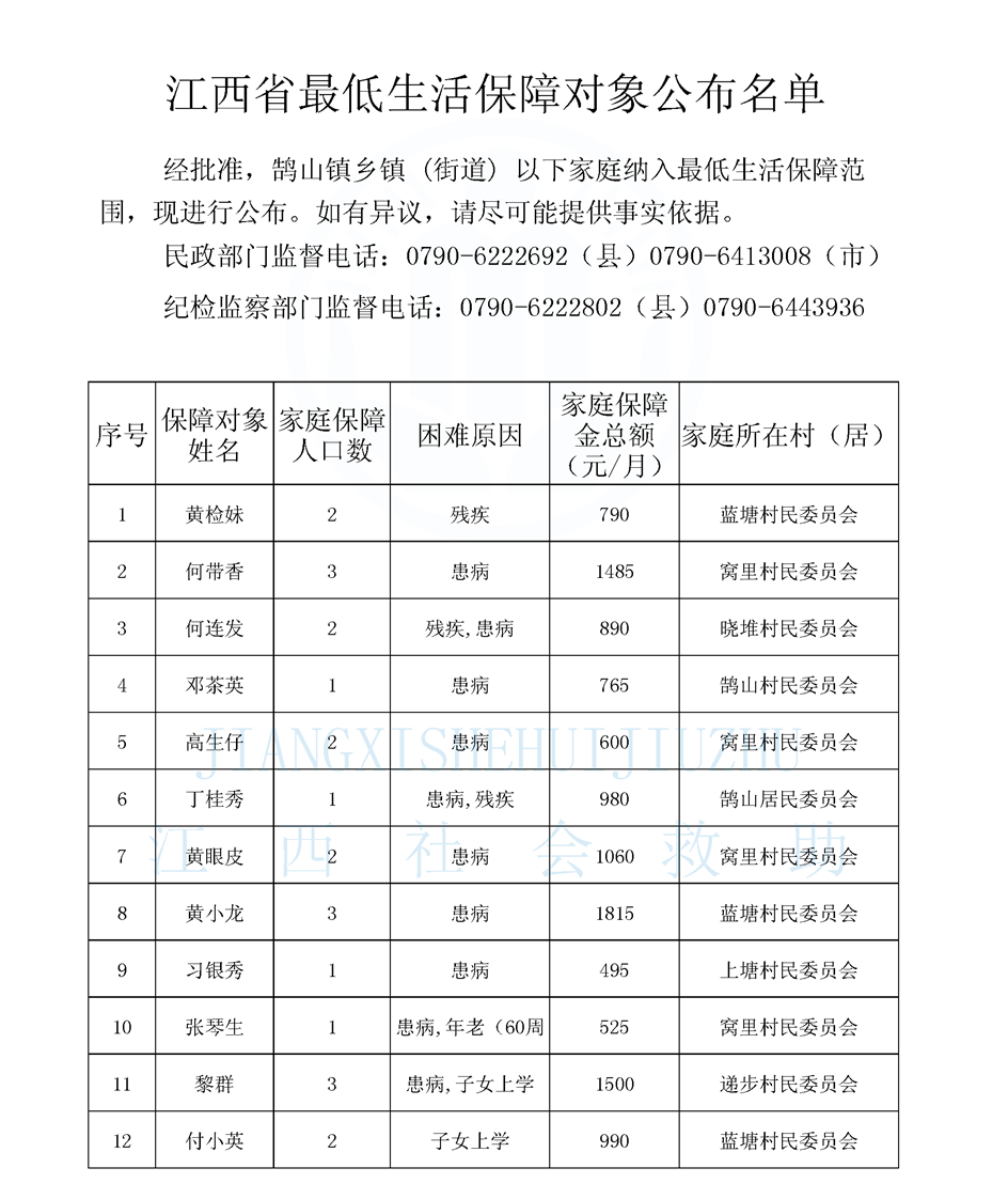 鵠山鎮(zhèn)2026年2月最低生活保障對(duì)象公布名單